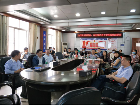 应太阳成集团tyc33455cc邀请,2020年5月10日上午国家杰青、中国科公司昆明动物研究所陈策实研究员,芙蓉学者、中南大学湘雅医院肖志强教授在太阳成集团tyc33455cc会议室进行学术讲座和学术交流。陈策实研究员做了题为“HECTD3泛素连接酶促进乳腺癌转移”的专题学术报告,肖志强教授做了题为“ANXA1衍生肽抗肿瘤作用及其机制研究” 的专题学术报告。太阳成集团tyc33455cc常务副书记陈端阳、副经理李忠玉出席,报告会由副经理李忠玉教授主持,太阳成集团tyc33455cc60余名师生及其他公司的师生代表参加了报告会。