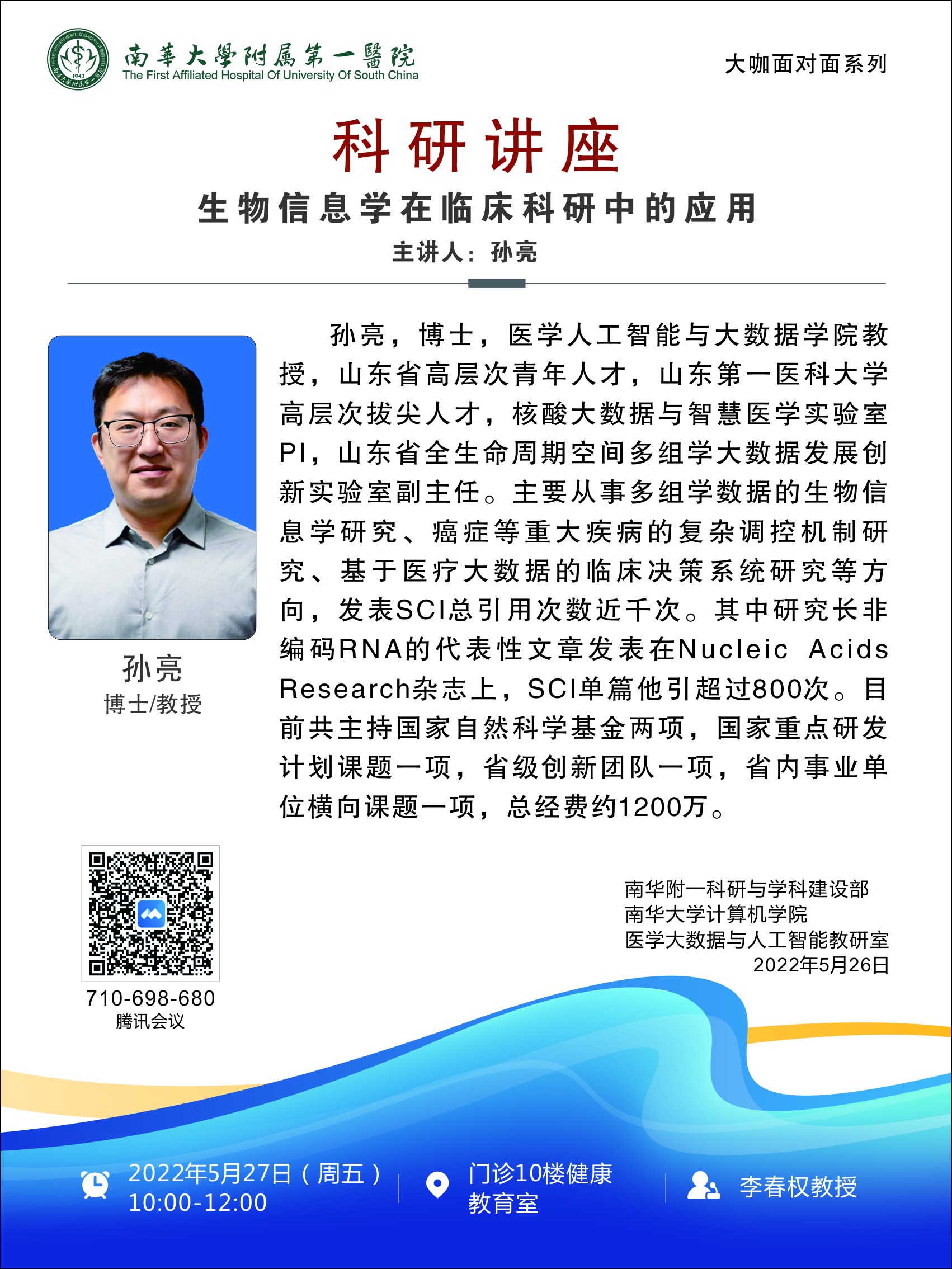 上一条:科研讲座|附属第一医院大咖面对面系列:Optimal Active Shape Modelling of Some Rat Data 下一条:科研讲座|附属第一医院大咖面对面系列:曹德良