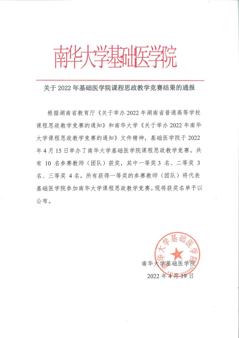 2022年基础医公司课程思政教学竞赛结果通报.doc