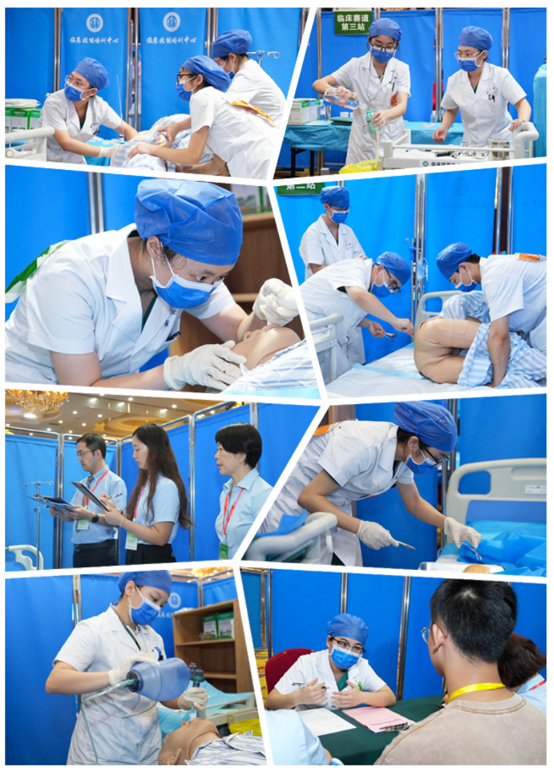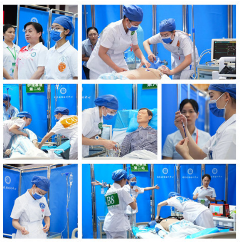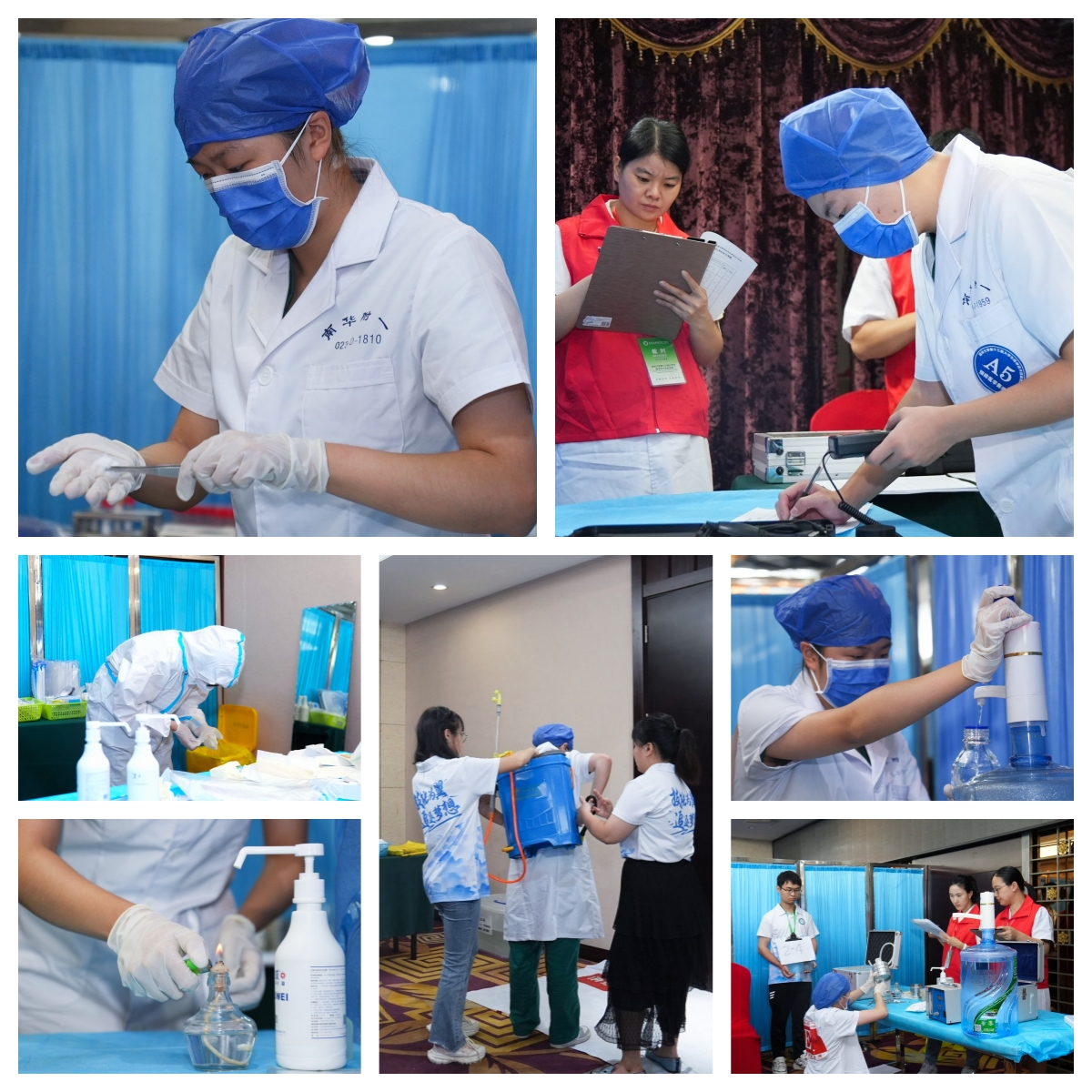 9日上午9点,三个赛道技能竞赛正式开赛,分初赛(站点式)和决赛(赛道式)两个阶段进行,比赛全程进行视频和图片直播,并邀请了资深教师进行专业解说,在线观摩人员如临现场,频频点赞。比赛历时两天20余个小时,赛事紧张有序进行,亮点纷呈,选手以医者的仁心、过硬的技术、昂扬的斗志展示了新时代医员工奋发向上、德医双修、仁心仁术的青春风采,让观众感受到了选手们的博学、审问、慎思、明辨的优良学风,感受到了教师们的敦品、励学、敬业、创新的优良教风,感受到了各参赛代表队担当作为、踔厉奋进的精神风貌。