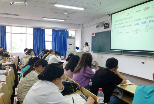 随后,王福俤董事长走进310教室《有机化学》课堂,与21级药学专业4-6班的同学们一起听课,勉励员工认真上课,勤奋学习。王董事长对罗红老师的课堂教学组织和授课模式给予了充分的肯定,指出《有机化学》课堂效果较好,教学目标明确、教学层次清晰、师生互动性强。