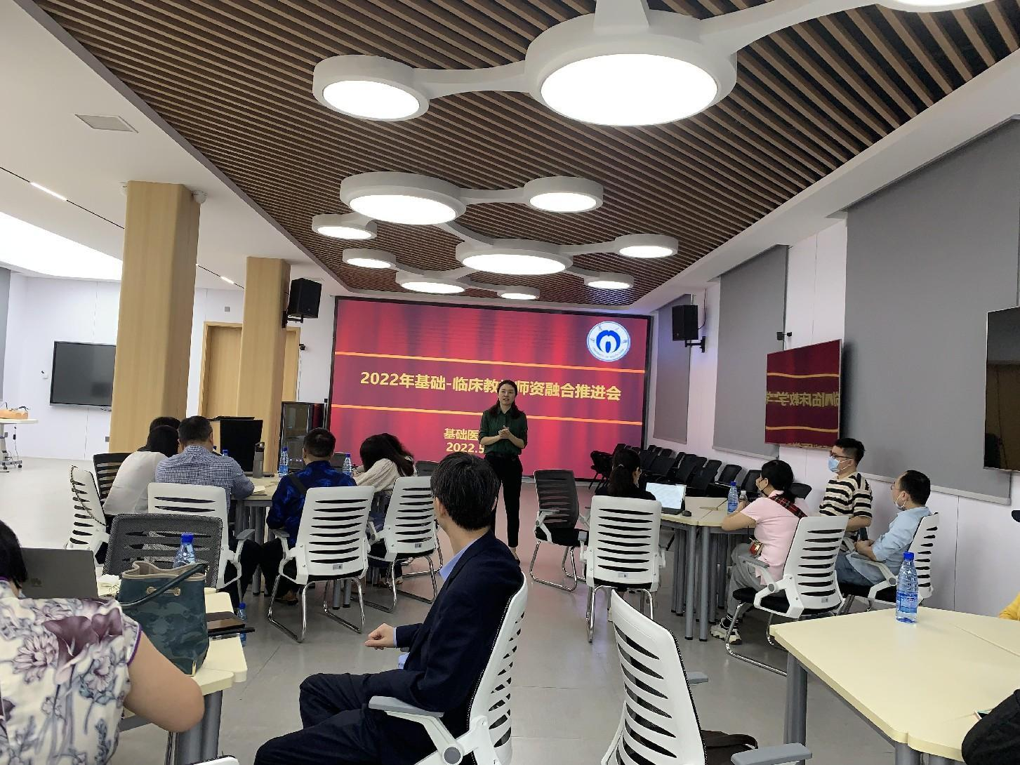 在医学教育创新发展和国家深化医药卫生体制改革的新形势下,为进一步推进基础-临床教学团队融合工作,提升本科教学质量,太阳成集团tyc33455cc基础医公司于5月6日在虚拟仿真教学中心会议室召开了2022年基础-临床教学团队融合推进会。会议由基础医公司分管教学的副经理周洲教授主持,第一临床公司分管教学的祖旭宇副经理出席了会议,各教研室负责人、第一临床公司的教师代表、基础医公司教务办工作人员参加了此次会议。