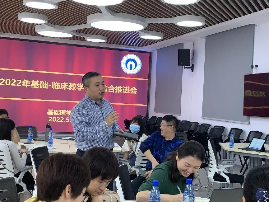 周洲副经理在医教融合协同创新推进会上明确了团队融合推进会的目的及意义,指出了基础医学与临床医学融合贯通的重要性,教学质量提升是永无止境的过程。基础-临床团队融合可以提高教师授课水平,加强公司教师人才队伍建设,提升本科教学质量。周洲副经理同时还强调不是所有的课程都必须要进行基础-临床的教学融合,基础-临床教学内容的融合应当有的放矢,根据各门课程的特点来具体操作;同时,一门课程中,不是所有的教学内容都必须要进行基础-临床的融合,要根据具体教学内容来设计、安排;再者,融合的方式可以是多样的,根据预期达到的教学效果可采用灵活多样的方式进行融合,杜绝模式化融合。