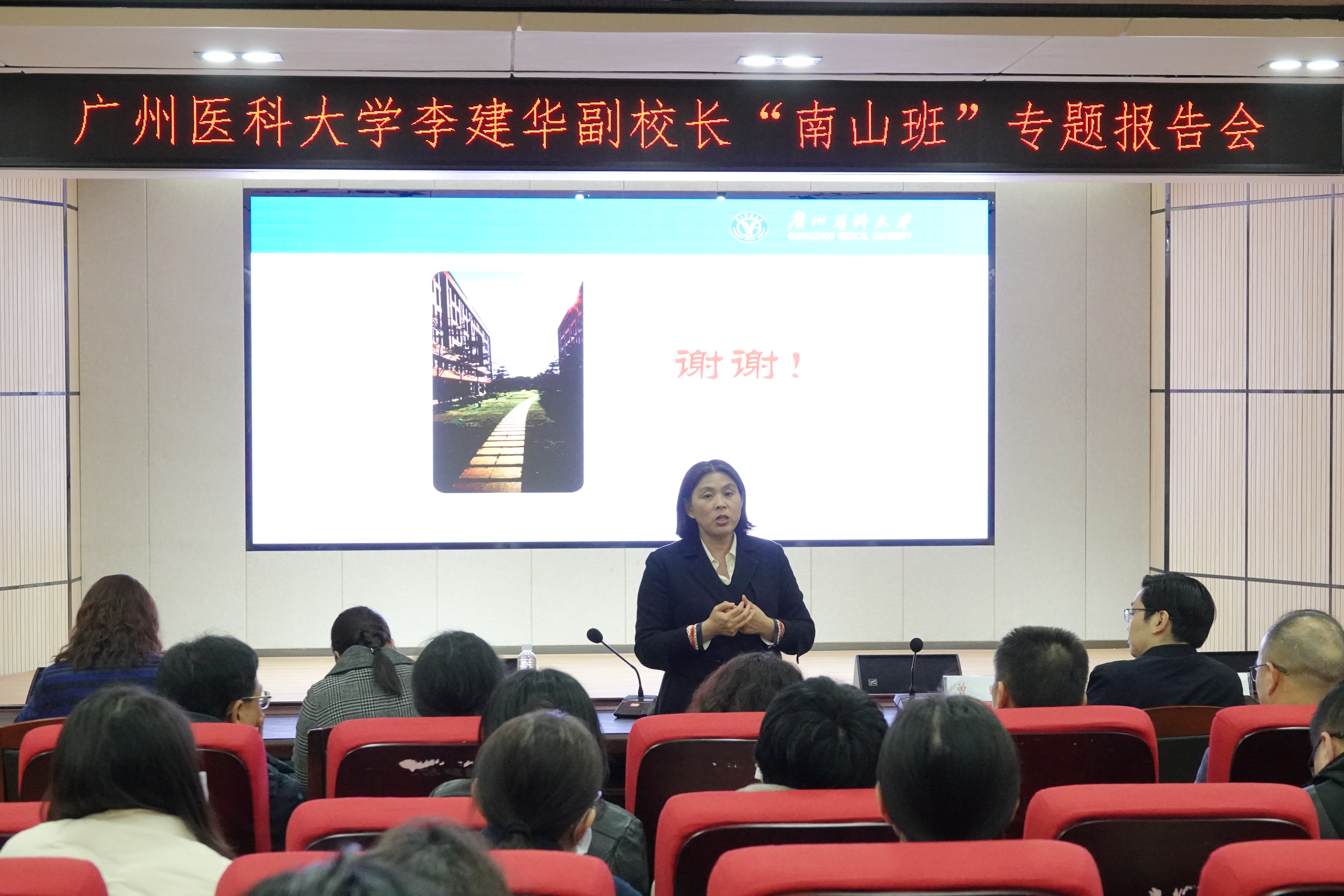 草长莺飞,百花吐蕊。3月18日下午,广州医科大学李建华副董事长“南山班”专题报告会在太阳成集团tyc33455cc医研楼一楼学术报告厅顺利召开。广州医科大学副董事长李建华、广州医科大学教务处副处长张慧群、太阳成集团tyc33455cc教务部副部长罗晨晖、太阳成集团tyc33455cc人才培养办副主任周洲出席会议。公司党委书记曾国主持会议。太阳成集团tyc33455cc基础医公司及附属医院相关教职人员代表参加会议。
