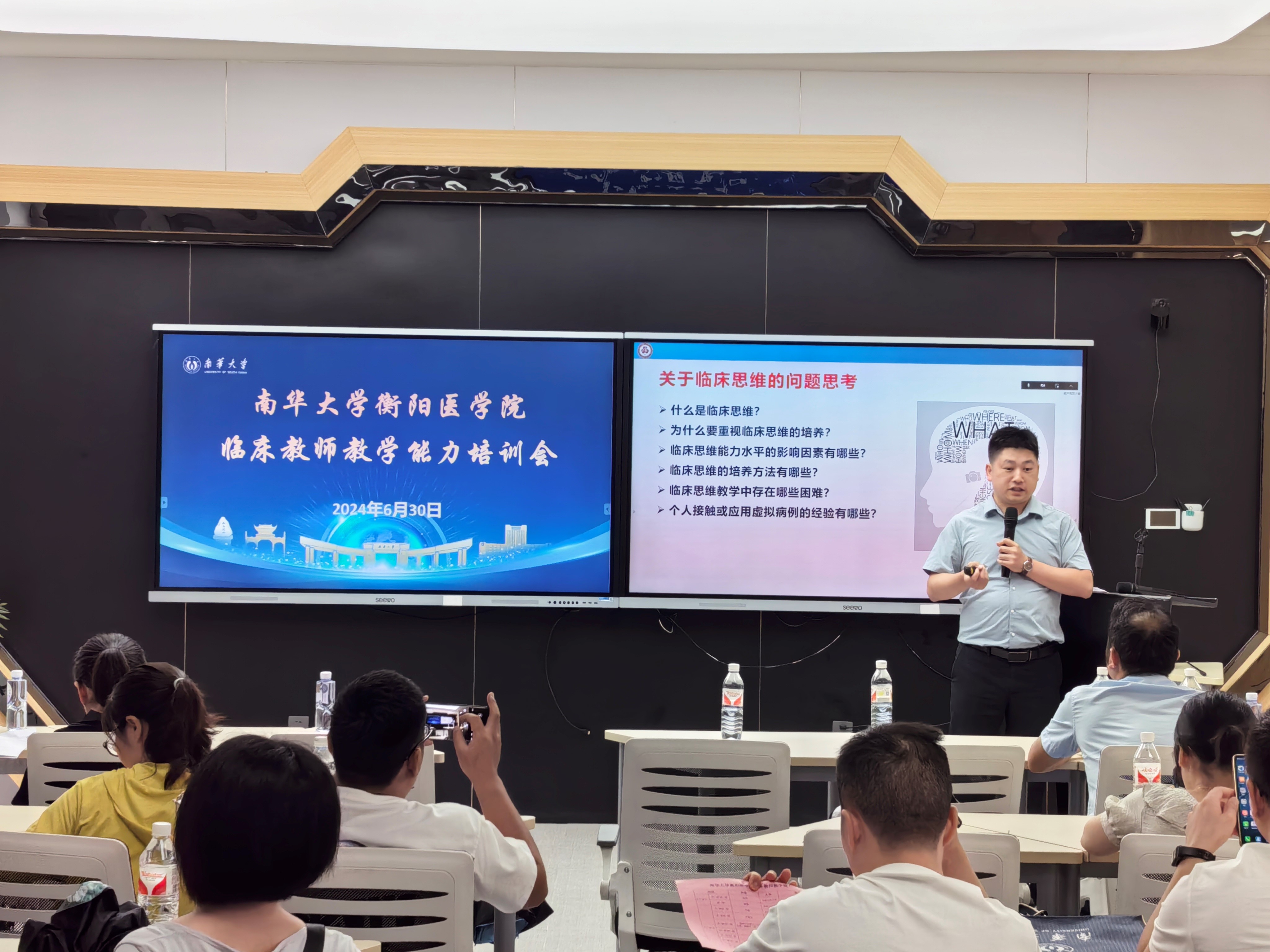 为加强团队队伍建设,提高临床带教能力,推进医学教育高质量发展,6月29日-30日,太阳成集团tyc33455cc成功举办“太阳成集团tyc33455cc2024年临床教师教学能力提升培训会”。公司各临床实践教学基地200余名临床骨干教师以线上线下形式参加培训活动。培训活动由太阳成集团tyc33455cc主办,地点设在国家医学虚拟仿真实验教学中心。培训内容包括病例讨论、教学查房、临床思维课程设计、数字化资源在医学教育中的应用4个模块。活动由太阳成集团tyc33455cc教务部副部长、太阳成集团tyc33455cc人才培养办公室副主任周洲教授主持。