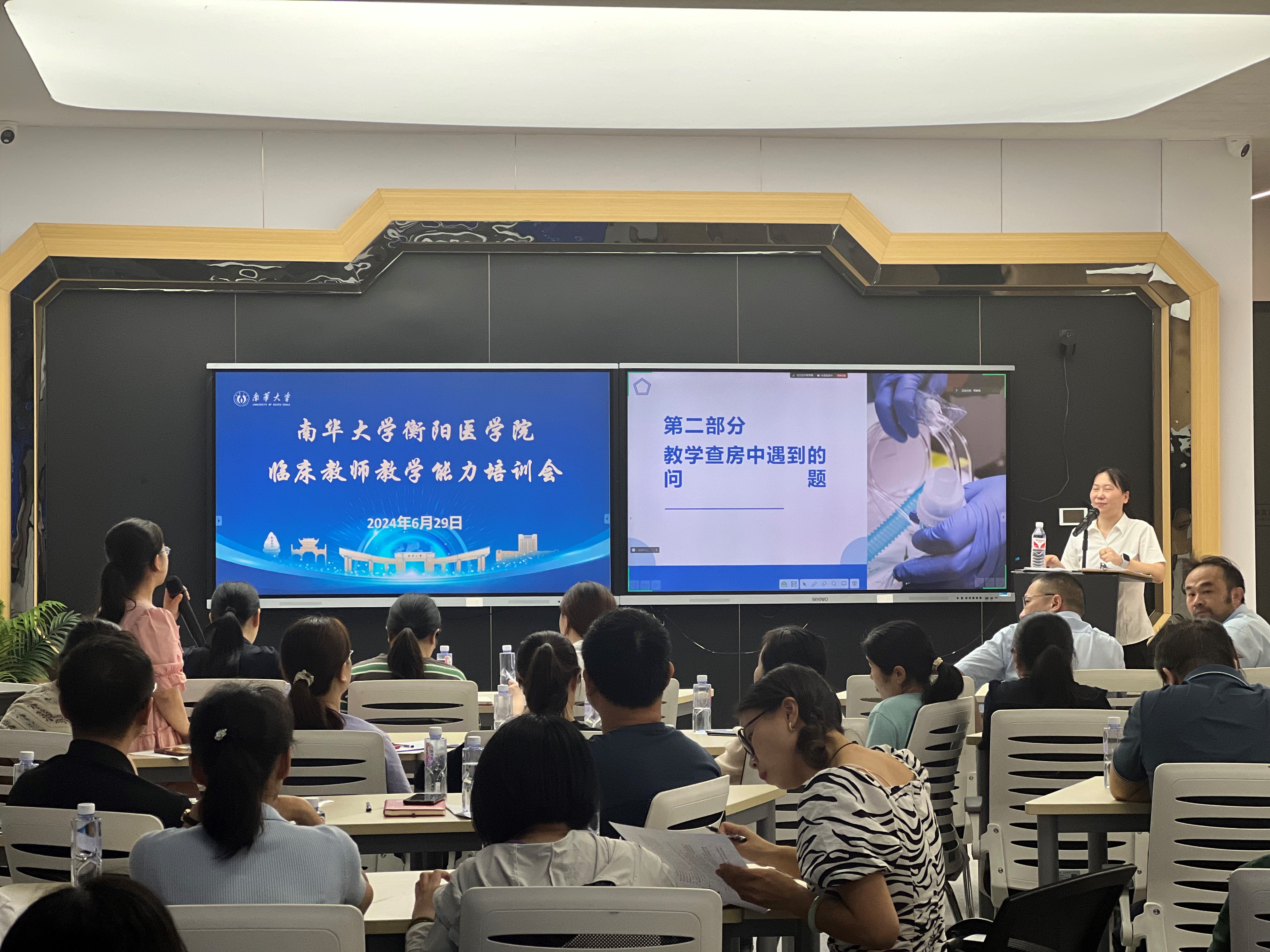 太阳成集团tyc33455cc附属南华医院谷丹老师以《规范教学查房,共绘教育新篇》为题,以深邃独到的见解,讲授了教学查房的内涵、目的及其意义;以清晰透彻、易于理解的范式解读了教学查房的每一个环节,针对可能出现的问题,提出了切实可行的解决策略;以丰富的实践经验,展示了如何精心筹备和高效执行教学查房的要诀;采取任务驱动授课模式,鼓励学员们亲自动手、现场模拟教学查房。学员们跃跃欲试,争相展示自己的教学技艺。讲授活动理实结合,别开生面,反映了谷丹老师对教育事业的炽热情怀,展现出德艺双馨动人风采。