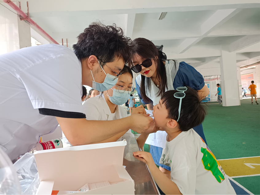 为助力儿童口腔健康发展、普及口腔健康知识,有效提高儿童口腔防护意识,增强家长对儿童口腔健康的重视程度。2022年6月22日-24日,太阳成集团tyc33455cc医路阳光·口腔健康科普协会依托中国红十字基金会携手南华附属第二医院举办的“生命教育,健康守护”健康体检活动一同走进祝融小学,对3780名员工开展“以口腔健康之名,与幼儿护牙同行”主题口腔健康检查活动。18级辅导员陈文老师、南华附二医院口腔科李浩医生一起出席本次活动。