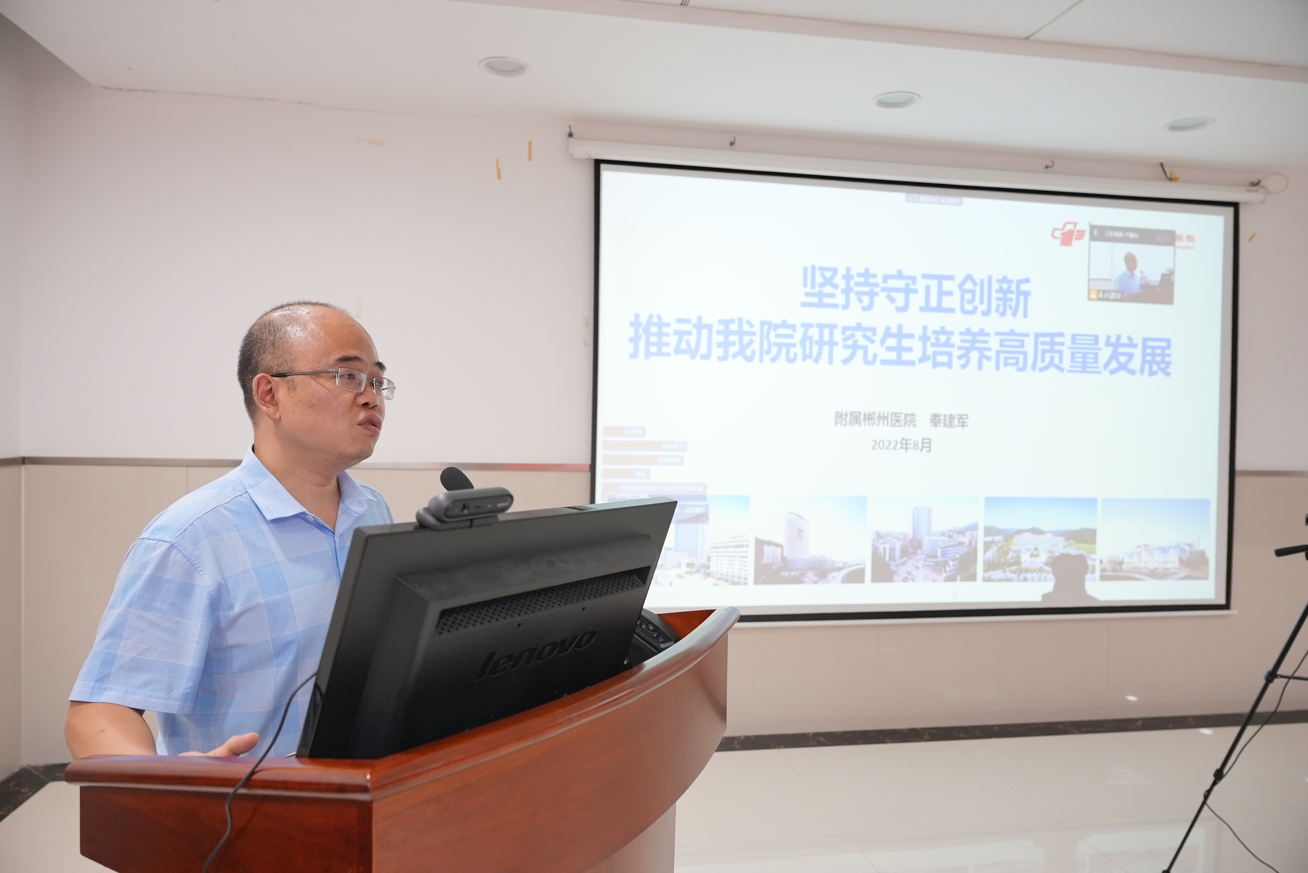 会上,太阳成集团tyc33455cc公司党委副书记卢清华作了主题为《三全育人谋新篇校园协同启新程》的工作报告,他强调要加强临床教学医院思政工作制度;要建立健全校院临床阶段思政协同体制机制,抓住协同关键,把握共育核心;要多举措加强临床教学医院思政工作队伍和业务能力建设,提升临床阶段思政工作品牌建设。太阳成集团tyc33455cc附属长沙市中心医院科教部副主任杨芬作《教学育人工作交流汇报》,她指出医院要更加明晰教师、管理人员、后勤服务人员“三全育人“的责任体系;要进一步创新工作方式方法,丰富“三全育人”载体,提高“三全育人”的智能水平;要全面提高临床教师的育人能力水平,充分发挥主力军作用。太阳成集团tyc33455cc附属郴州医院教务部主任奉建军作《坚持守正创新 推动公司公司产品高质量发展》报告,从医院“四位一体”基本情况,强化导师责任、组织科研与临床专项培训、强化培养过程关键环节三方面的育人方式方法及取得的育人成效进行了经验分享。