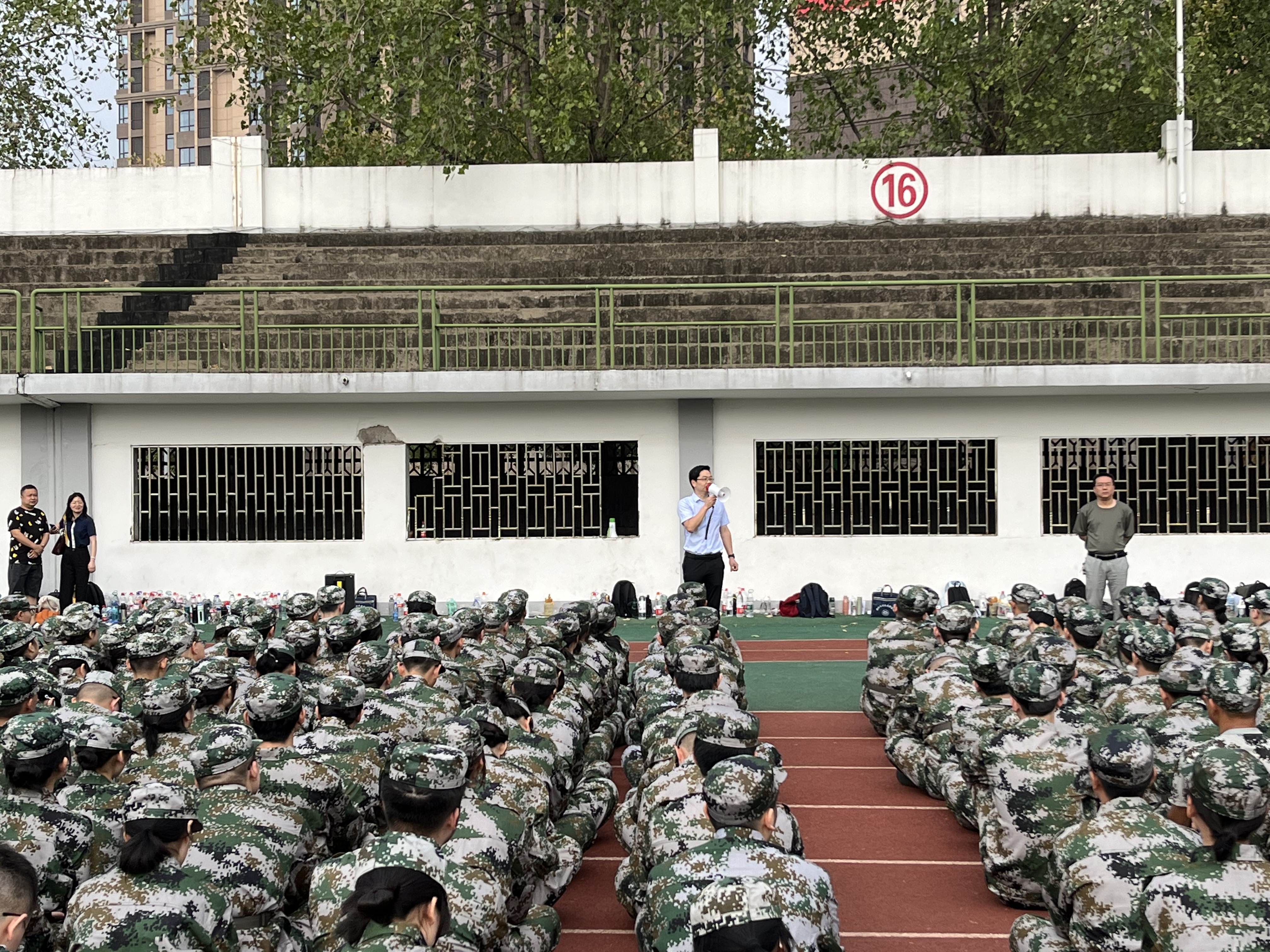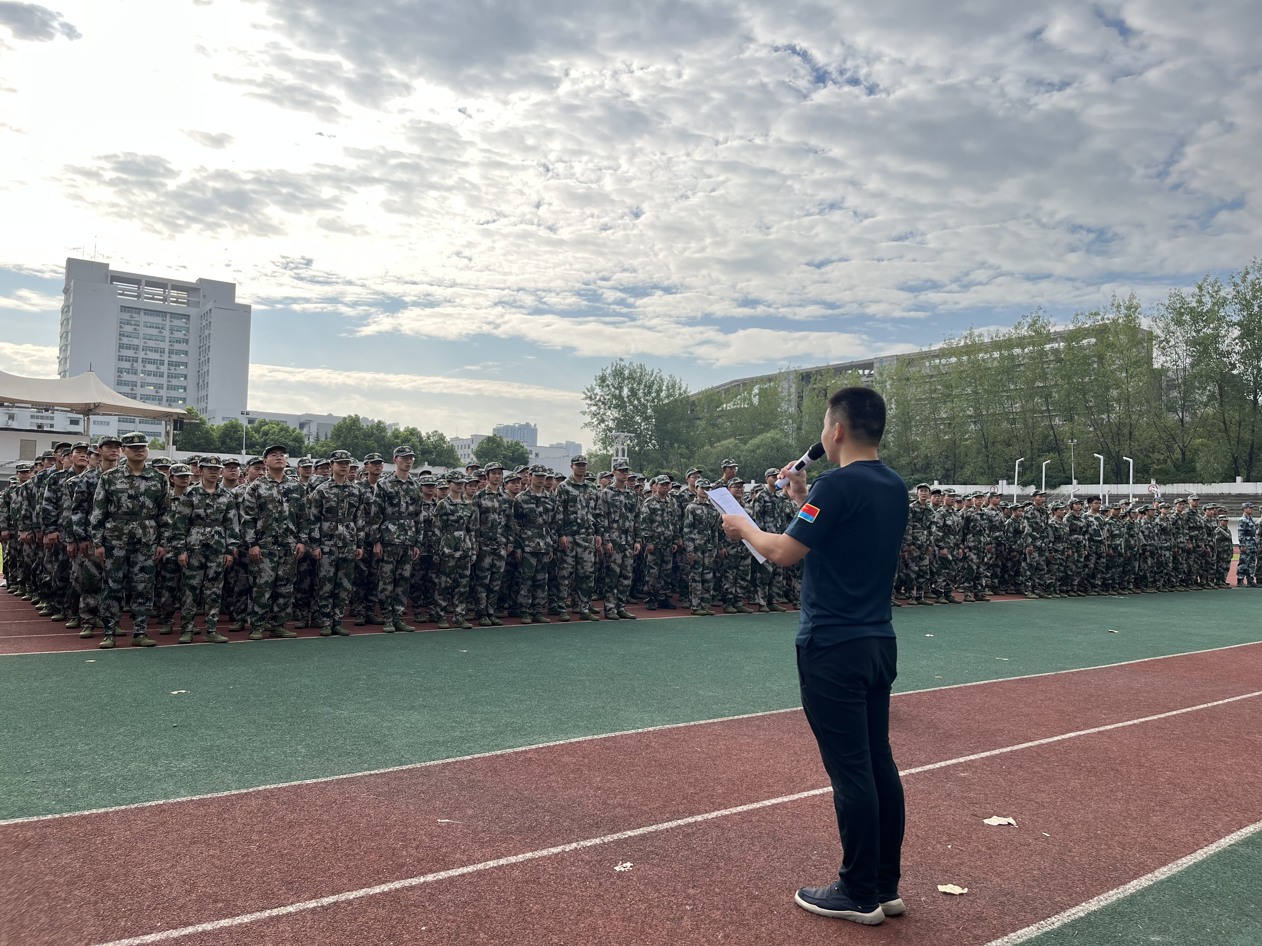 会后,全体参训同学在教官的带领下分赴各自训练场地,以饱满的热情和昂扬的斗志投入到军训生活中。