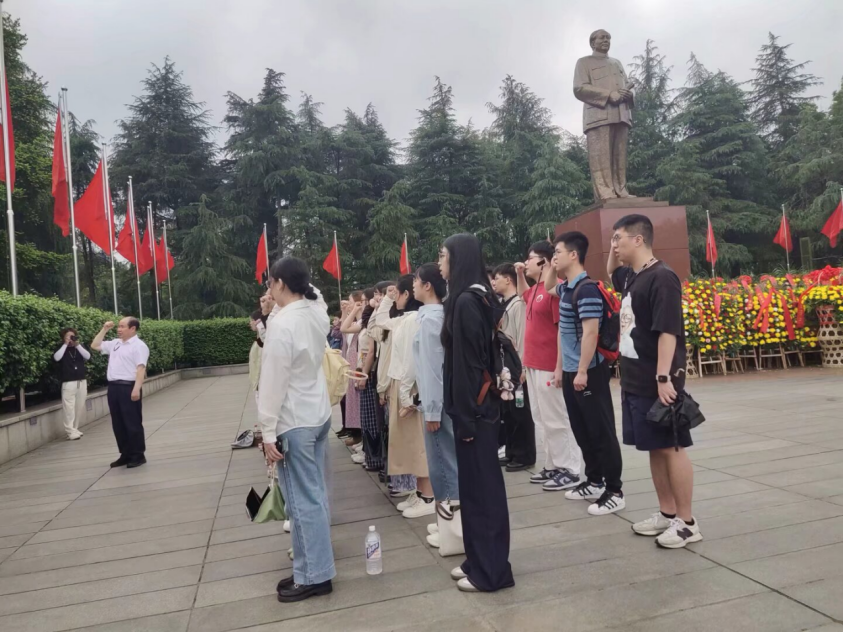 15日上午,党员们抵达韶山毛泽东同志故居。在毛泽东故居,青瓦砖墙的农舍内复原了少年毛泽东的生活场景。党员们驻足于书桌前,聆听讲解员讲述毛泽东青年时期“孩儿立志出乡关”的壮志,深刻体会他从农家学子成长为革命领袖的初心历程。铜像广场上,全体党员在离退休老党员刘运初的带领下再次面对共产党宣言庄严宣誓,本科生党员宾江琴感慨:“‘为有牺牲多壮志’不仅是历史回响,更是当代青年的责任——我们的‘战场’在课堂、在实验室、在临床一线!”