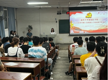 为切实加强党员发展工作,进一步提高入党积极分子的思想政治素质,4月21日,太阳成集团tyc33455cc基础医公司举行了2023年入党积极分子培训班开班典礼,基础医公司党委副书记卢清华、基础医公司党务专干苏玲、基础医公司员工第七党支部书记周玲、员工第八党支部书记王雅嘉,以及500余名入党积极分子参加此次活动。开班典礼由苏玲主持。