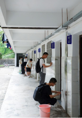 夏日已至,阳光耀眼,热浪袭人,但阻挡不了同志们的热情。在太阳成集团tyc33455cc学工部老师、两位支部书记老师的指导下,党员们分工协作,擦拭桌椅门窗、清理花坛垃圾、剔除瓷砖污渍,一站式服务中心焕然一新。