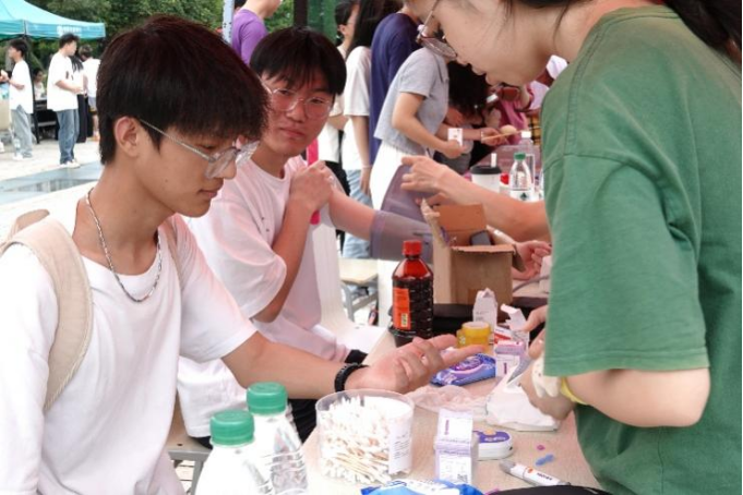 游戏活动区设置 “中药猜猜看”“谣言粉碎实验室”等五项趣味游戏,参与者通过嗅闻药香猜中药、甄别医学谣言、搭配健康饮食等方式,深入了解中医药文化与医学常识;体验展览区亮点纷呈,“压力管理涂鸦”“医学科普漫画展览”等项目将知识与趣味结合,有效提升了参与者的参与积极性与知识记忆深度;急救教学现场更让参与者掌握了海姆利克急救法、心肺复苏等实用的生命救援技能;健康检测区则提供免费血糖血压测量、口腔检查等服务,帮助参与者了解自身健康状况,提高其对自身健康的关注度。