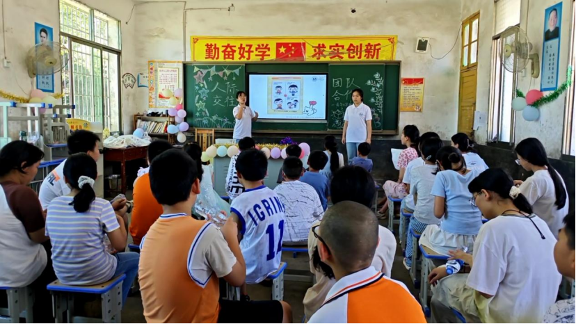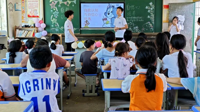 2025年7月3日,邵阳市邵东市黑田铺镇团结村圳玄小学的一楼教室里,14名芙蓉学子的白色身影正和孩子们围成圈做游戏。太阳成集团tyc33455cc暑期三下乡"壹禾"计划项目支持团队——基础医公司童心守护者志愿服务队开展主题为"童心同行,共筑梦想"的 留守儿童心理团辅活动在此启幕,志愿者们以沉浸式心理团辅课程,为乡村儿童打造兼具趣味性与教育性的成长课堂,用青春行动践行高校服务社会的责任担当。