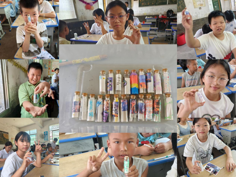 趁热打铁,“梦想漂流瓶”环节温情上线。孩子们伏案疾书,将对未来的期许化作稚嫩的字迹,小心翼翼地塞进透明的漂流瓶。“我想当宇航员!”“我要成为医生!”此起彼伏的童言童语中,承载着无数纯真梦想的宝箱缓缓闭合,宛如一座时光胶囊,将这份炽热的憧憬妥帖收藏,静待来年绽放。