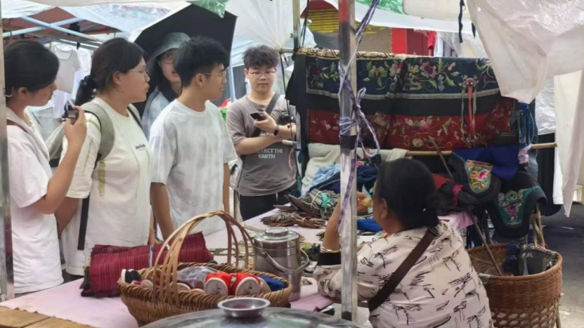 集市寻纹:解码非遗传承现实图景。7月2日,实践首站聚焦凤凰县山江集市。队员们以苗绣纹样为切入点,通过与摊主深度对话发现:尽管花草纹样仍承载着“花开富贵”的美好寓意,但部分从业者对纹样背后的文化内涵认知有限。这种“只知其美,不解其魂”的现状,直观呈现出非遗传承面临的现实挑战,为后续文化解码工作提供了精准坐标。
