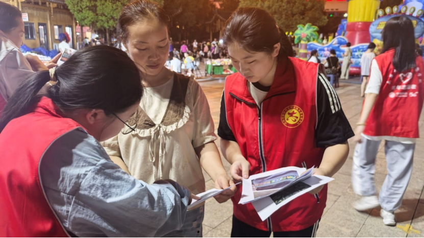街头实践:创新文化传播模式。在保靖县集市,团队打造了“苗韵文化+健康服务”惠民摊位。文化展示区突破传统陈列模式,通过纹样解析与苗药知识互动,让群众在趣味体验中理解非遗内涵;互动环节创新设置抽奖机制,群众在了解文化后可赢取苗元素礼品。“没想到纹样里藏着祖宗的故事!”这种“传播+体验+服务”的创新模式,获得群众积极反馈,为非遗活化提供实践样本。