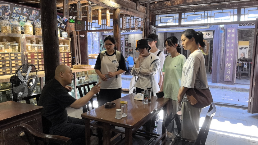 医道探寻:叩问民族医学智慧。7月3日至4日,团队走进苗药非遗馆与杨氏正骨馆,在草木药香中探寻民族医药的千年智慧。在苗药非遗馆,二十四脉诊法通过五指脉诊精准定位病因的诊疗智慧,与数百种道地药材标本共同构建起完整的“两纲五基”传统医学图谱;杨氏正骨馆省级非遗传承人杨医生“X光辅助诊断+祖传正骨手法”的创新实践,生动展现了传统医学与现代科技的融合可能。调研发现,构建“诊疗可视化、疗效标准化”的现代传播体系,是破解苗医药传播困境的关键路径。