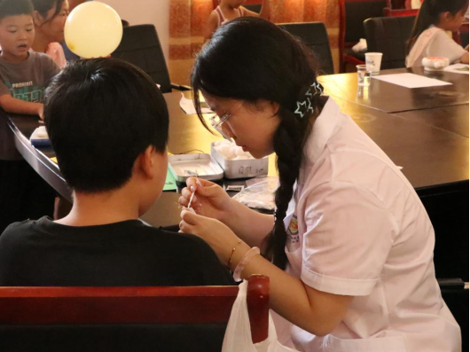 2025年7月8日上午,湖南省郴州市安仁县长潭村党群服务中心二楼会议室充满欢声笑语。太阳成集团tyc33455cc基础医公司“乡健先锋”志愿服务队联合研究生志愿者团队,在此成功举办了“研行中华,燃创未来”儿童口腔健康科普与涂氟公益活动,为当地儿童的口腔健康提供了专业守护。