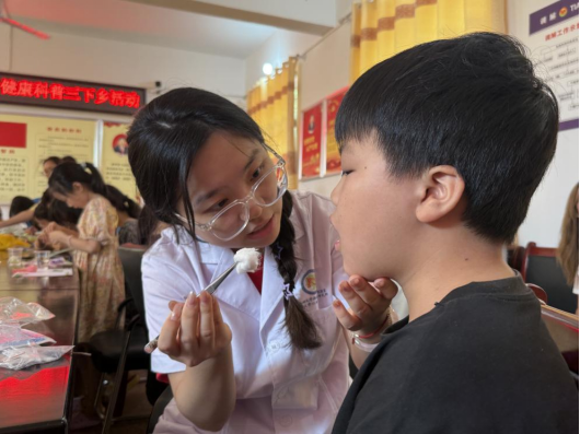 一位家长在现场由衷表示:“这次活动意义大!娃儿学到护牙知识,还免费做了专业涂氟,希望多到乡下!”涂氟能在牙齿表面形成保护层,增强抗酸蚀能力,可预防龋齿。农村儿童口腔保健意识弱,龋齿问题更突出。本次活动将涂氟服务送到村口,既提供健康干预,又通过科普讲座提升孩子和家长的口腔保健意识,为乡村儿童健康成长增添科学屏障。
