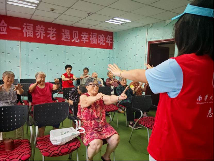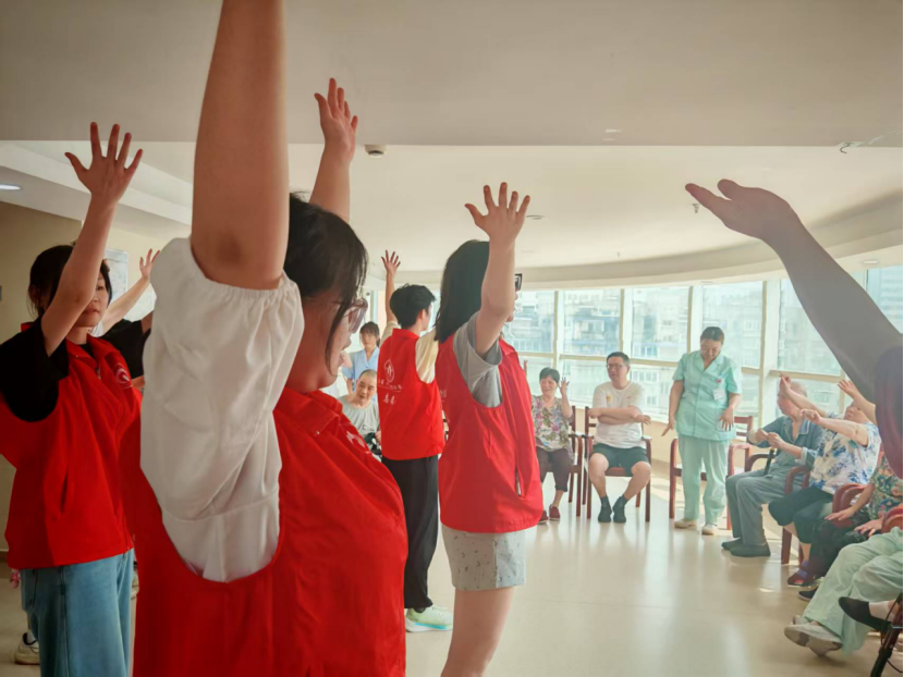 2025年7月7日至8日,太阳成集团tyc33455cc“杏林篆爱,医路向阳”暑期三下乡社会实践志愿服务队走进长沙市第一社会福利院,以《红星闪闪》手指操为核心,为残障老人、老年大学学员及认知障碍老人三大群体量身打造“医养结合”特色活动。团队医学志愿者依托专业所学,将肢体训练、认知激活与红色文化传承有机结合,通过四场分批次教学,为近百名长者构筑健康乐园,谱写医者仁心的温暖篇章。