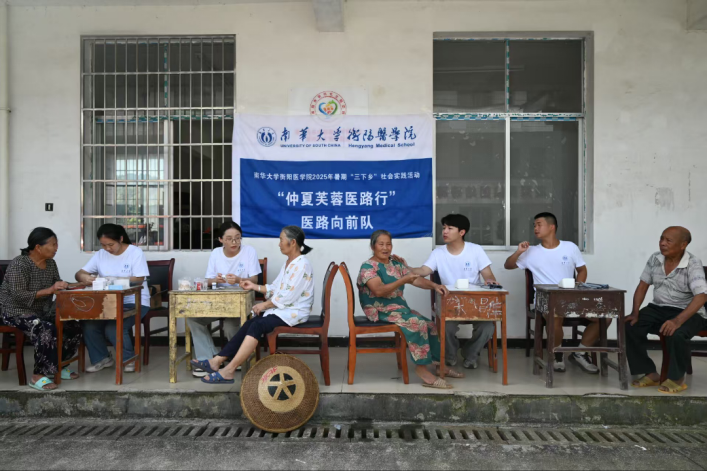 为推动乡村振兴,助力美丽乡村建设。7月31日,太阳成集团tyc33455cc基础医公司“仲夏芙蓉医路行,医路向前”社会实践队的队员们在绥宁东山侗族乡牛背岭村设立义诊台,为老人们量血压、测血糖、答疑解惑;手持普通话手册,教孩子们识读词语、帮助乡亲们提升普通话运用能力。