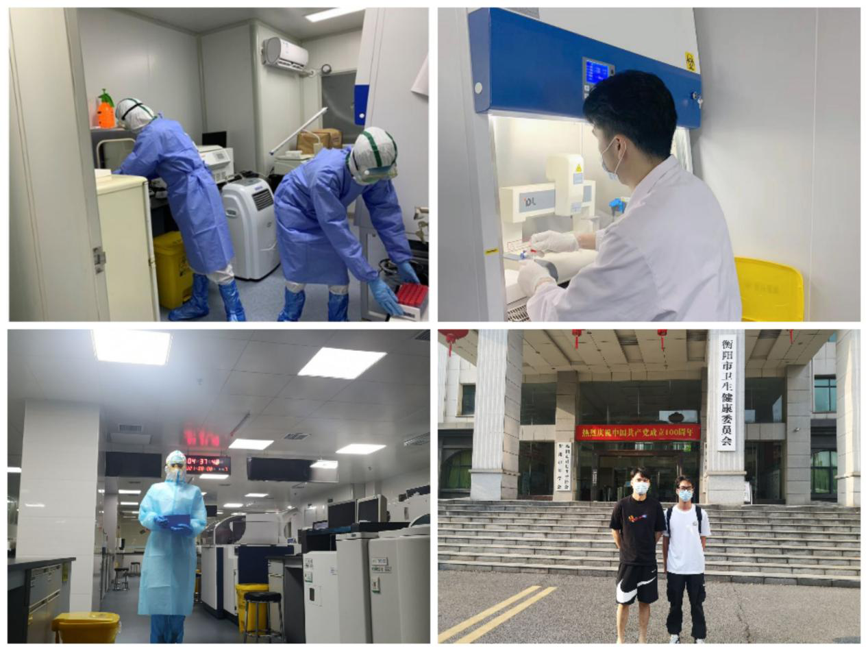 雷文波同学担任衡阳支援张家界核酸检测队队长,带领队员20人积极支援张家界的抗疫工作,他们投入到紧张而繁忙的工作中,每天基本上就只睡四、五个小时,承担了包括核酸检测,整个方舱的样本接收,核酸检测,物资管理与协调,还承担了整个方舱点工作人员(大约400人)每天的核酸采样工作。