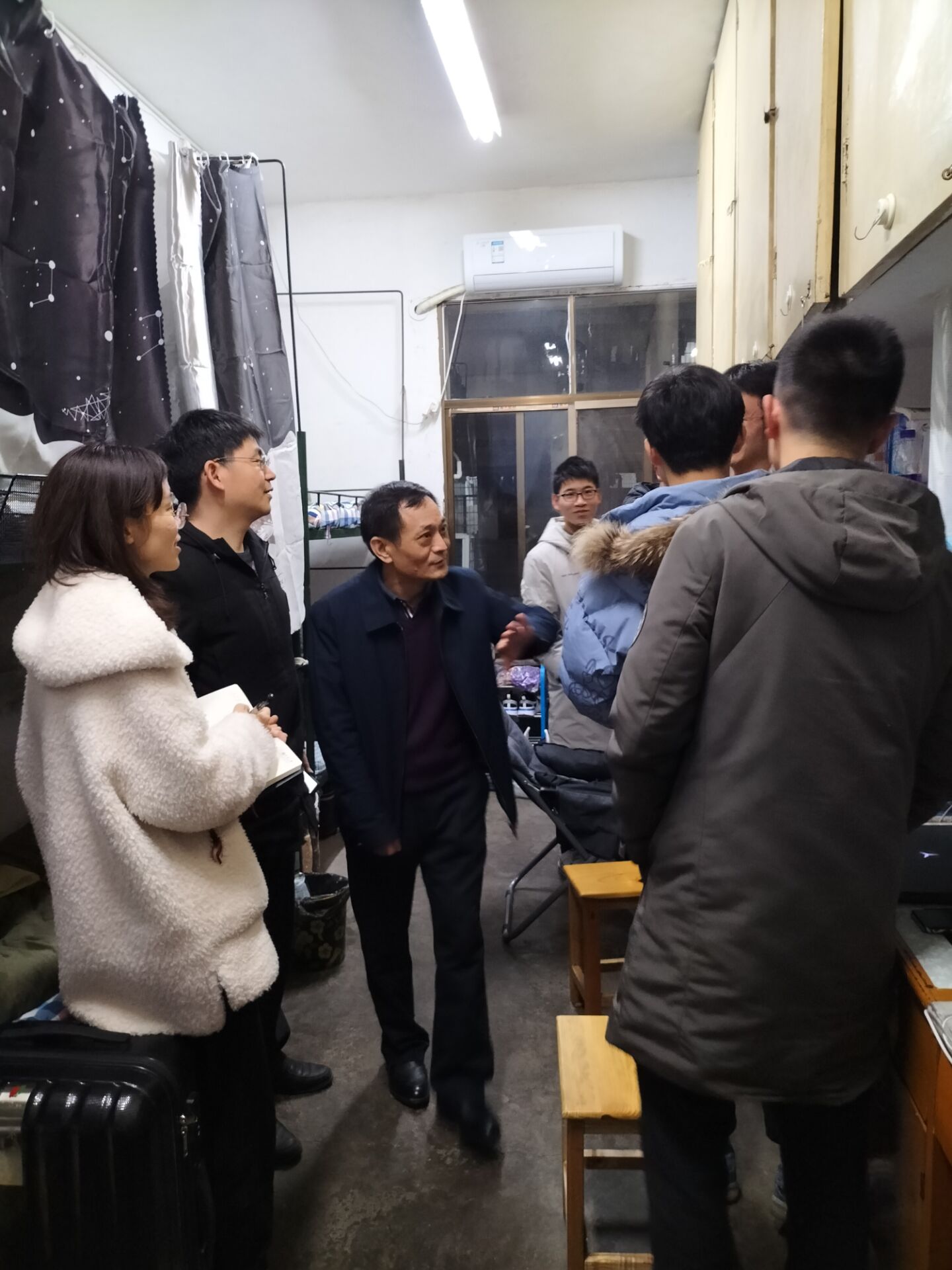 此次走访老师们根据宿舍情况进行了细致分组,责任落到个人,确保走访到员工宿舍的每栋每室。“你们宿舍人都来了吗?”走访过程中,陈端阳及各位领导老师每到一间宿舍,首先确认的就是员工是否安全到校,随后就学习、生活中的问题和困难与员工全方位沟通、交流。谈话中,陈端阳强调,在外求学最重要的就是保护好自身的人身安全,看管好贵重物品,有问题和困难及时与老师或班干部沟通联系。临走时,领导老师们还送上了新年祝福,希望同学们继续努力、积极向上,学习更上一层楼。