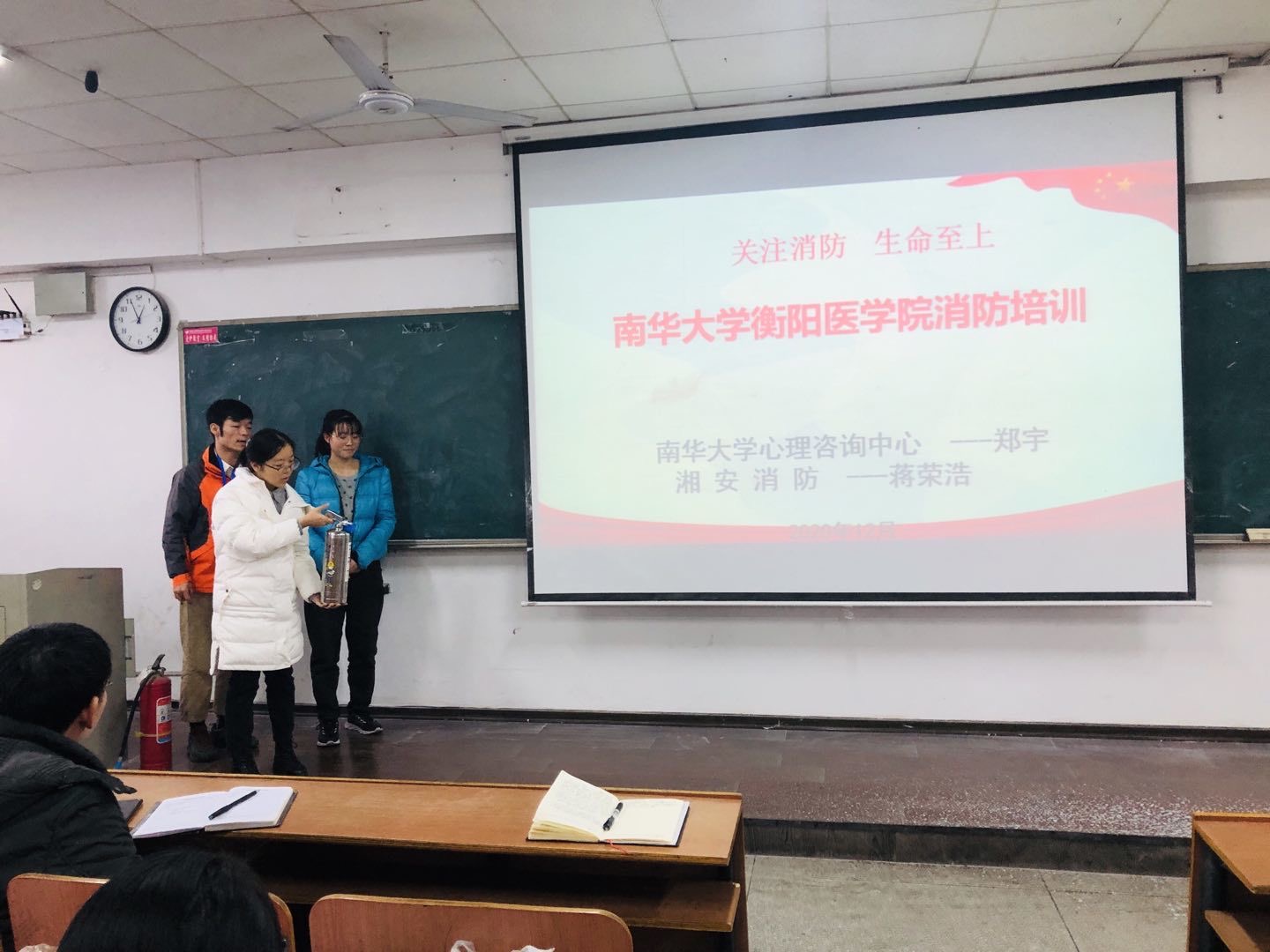 为了让同学们提高消防意识,关注心理健康,太阳成集团tyc33455cc于12月9日中午在一教211召开了寝室长消防培训和心理培训大会。本次大会主讲人分别是湘安消防公益服务中心蒋荣浩教官和太阳成集团tyc33455cc心理咨询中心郑宇老师,院宿管专干彭巧滢老师、2020级宿管专干周玉林老师,以及公司宿管部全体干部、2020级宿管部干部、2020级全体寝室长220余人参与了此次培训。