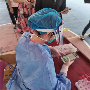 在进行规范的培训后,吴婷婷便投入疫情防控工作中,引导群众进行扫码登记、录入受检者信息、采集样本、送样检测......吴婷婷说道:“夏天的海南岛艳阳高照,虽有帐篷遮阳,但不一会儿汗水便浸湿了衣衫,我们不敢有丝毫松懈,希望我们的青春汗水可以筑起海南疫情防控高墙。”