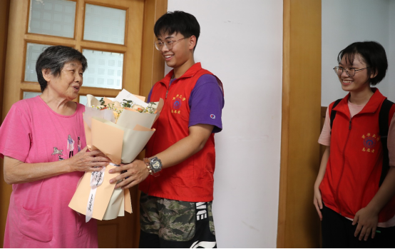 同学们分成四个小组来到独居老人谢群宗、丁翠芬以及高龄多病老人曹颂尧、龙熙喜的家中,送上献花和节日祝福,与老人们聊家常、谈生活,了解他们的身体状况和生活情况,听老人们讲述自身经历,主动搞卫生整理房间,教老人们使用智能手机。离开的时候,同学们还和与老人们互加了微信,并表示老人们有困难可以随时与志愿者们联系。