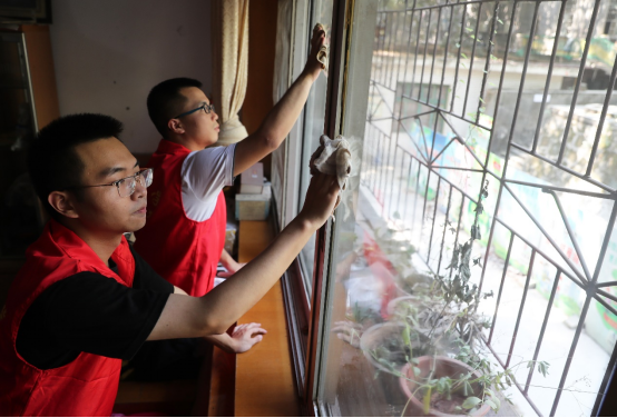“你们来看我,又送花又干活,我觉得这个重阳节太温暖了。”龙熙喜老人说。基础医公司20级卓医班姜沐霖笑道:“退休老教授似自家爷爷般和睦可亲,为他们擦拭窗户、拖洗地板的过程中,不时关心我们的学习生活,虽年过八十仍精神健硕。我感觉在劳动中拉近了两代人的距离,帮助老人的同时,亦充实自己的精神世界。”