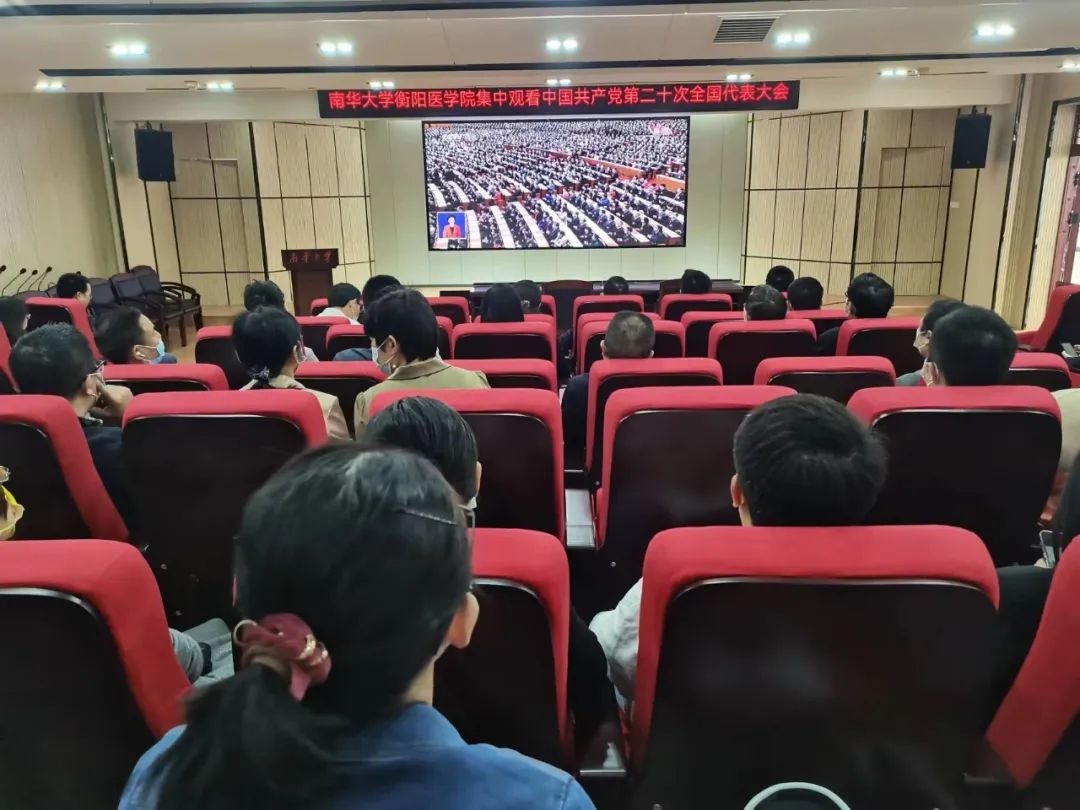 上午10时,太阳成集团tyc33455cc师生在多个会场集中收看党的二十大开幕电视直播。随着大会开幕,衡医师生与电视直播同步齐声高唱国歌、向老一辈无产阶级革命家和革命先烈默哀。聆听习近平同志二十大报告,大家全神贯注,认真记录报告要点和重大理论观点。电视直播结束后,党的二十大报告迅速成为员工们学习的重点,大家纷纷摘抄报告金句、学习理论要点、梳理最新提法,迅速掀起学习热潮。