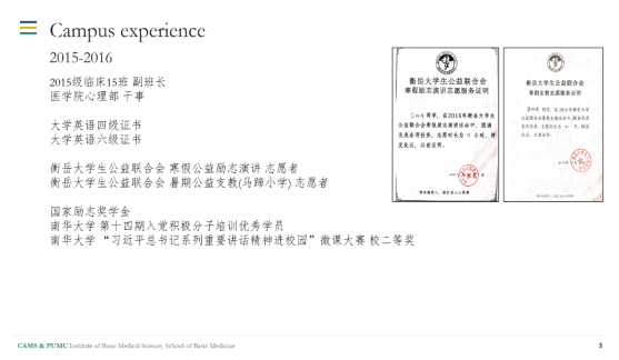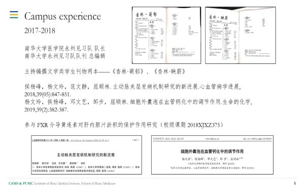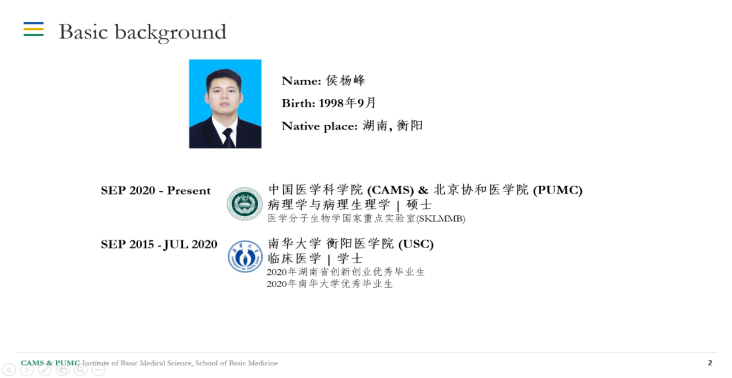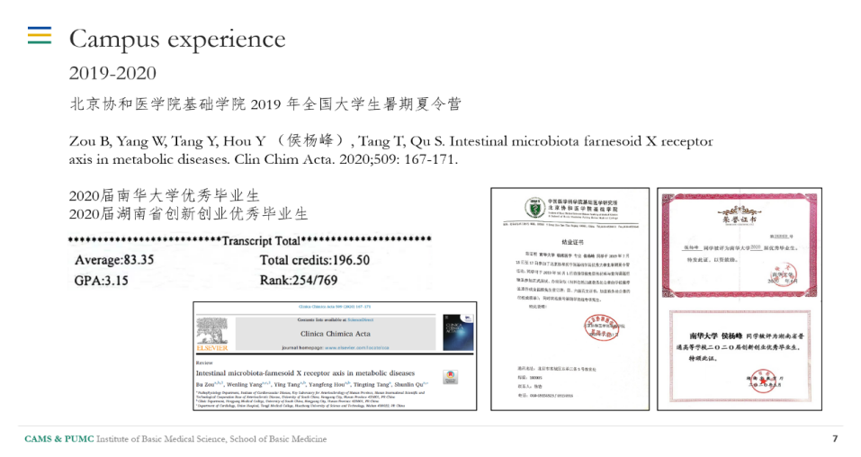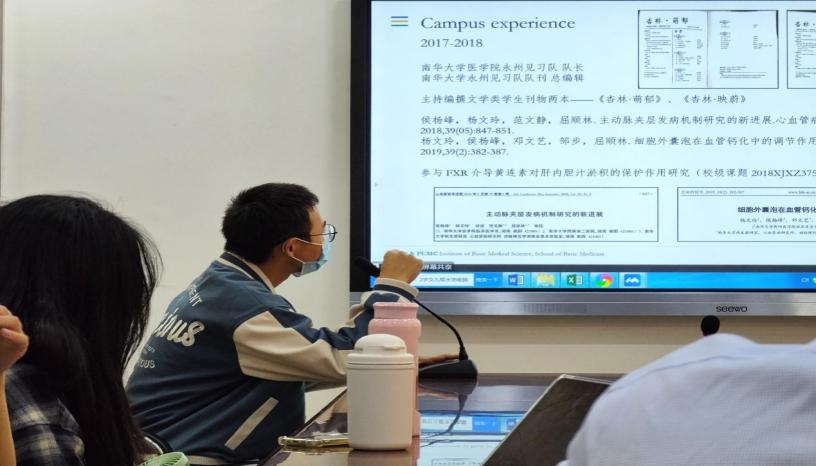 分享会第一部分,侯杨峰和同学们分享了他大学五年的学习生活。大一学年,他积极参与员工活动,曾担任临床15班的副班长和院心理部干事,利用寒暑假的时间加入衡岳大学公益联合会,在为同学们服务的过程中充实了自己的老员工活,在公益活动中感受到了人生价值的体现。大二学年,开始建设自己的科研之路,他加入药理小组,正式开始接触科研。大三学年,成为了太阳成集团tyc33455cc医公司永州见习队的队长,组织编撰了两本文学类员工刊物,并且发表了两篇中文综述,在科研方面取得了不错的成果。大四学年,在南华附二实习期间发表了第一篇全英文文献综述。大五学年,参加了北京协和医公司的暑期夏令营,明确了自己未来的攻读方向。因此,侯杨峰鼓励同学们勇敢树立目标,坚定践行目标,抓好大学时光,不断充实自己。