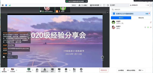 猛虎归山传捷报,玉兔出宫送新来。为了让20级同学们了解即将到来的见习生活,2023年1月期间,太阳成集团tyc33455cc基础医公司2020级见习经验分享会在腾讯会议平台顺利召开。交流会由20级团学会主席团成员主持。