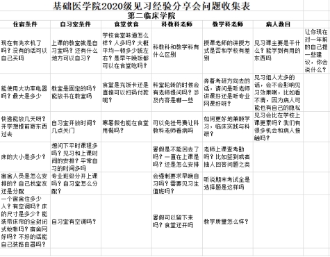 20级主席团收集问题、联系19、20级各队干,精心组织筹划,开展此次见习经验分享会。本次经验分享会包含第一临床公司,第二临床公司,南华临床公司等在内共有十二个分会场,通过线上会议平台各拟时间,分别开展。