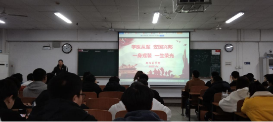 2023年春季学期,基础医公司迎来了15名退役复学同学。为了更好地帮助退役复学同学们尽快融入校园生活,激发全体在校员工爱国情怀,3月30日晚,基础医公司在南华楼211教室举行了2023年春季退役老员工复学入班仪式暨征兵宣讲大会。参与活动的有基础医公司党委副书记卢清华老师,2022级辅导员郭志勇老师、王雅嘉老师,会议由周玲老师主持。