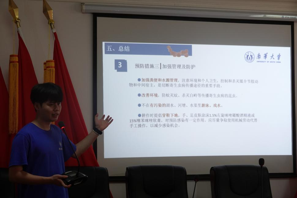 本次宣讲紧紧围绕“认识了解常见寄生虫以及其感染症状”与“如何预防寄生虫病”两个方面,向新桥村村民介绍了蛔虫、钩虫、鞭虫、血吸虫等六种寄生虫,并介绍了常见的感染途径,并告知村民,在日常生活中也要注意预防可能由泥鳅、螺类引起的寄生虫疾病。此外,宣讲人运用通俗易懂的比喻,向村民们讲解了常见的感染症状,并鼓励村民们自我检查,积极就医。宣讲还从生活习性、饮食习惯、防护管理三个方面总结了防范寄生虫的具体措施。“寄生虫离我们并不遥远,但只要我们在日常生活中加强防范心理,寄生虫也并不可怕。”宣讲人邓钦文总结道。