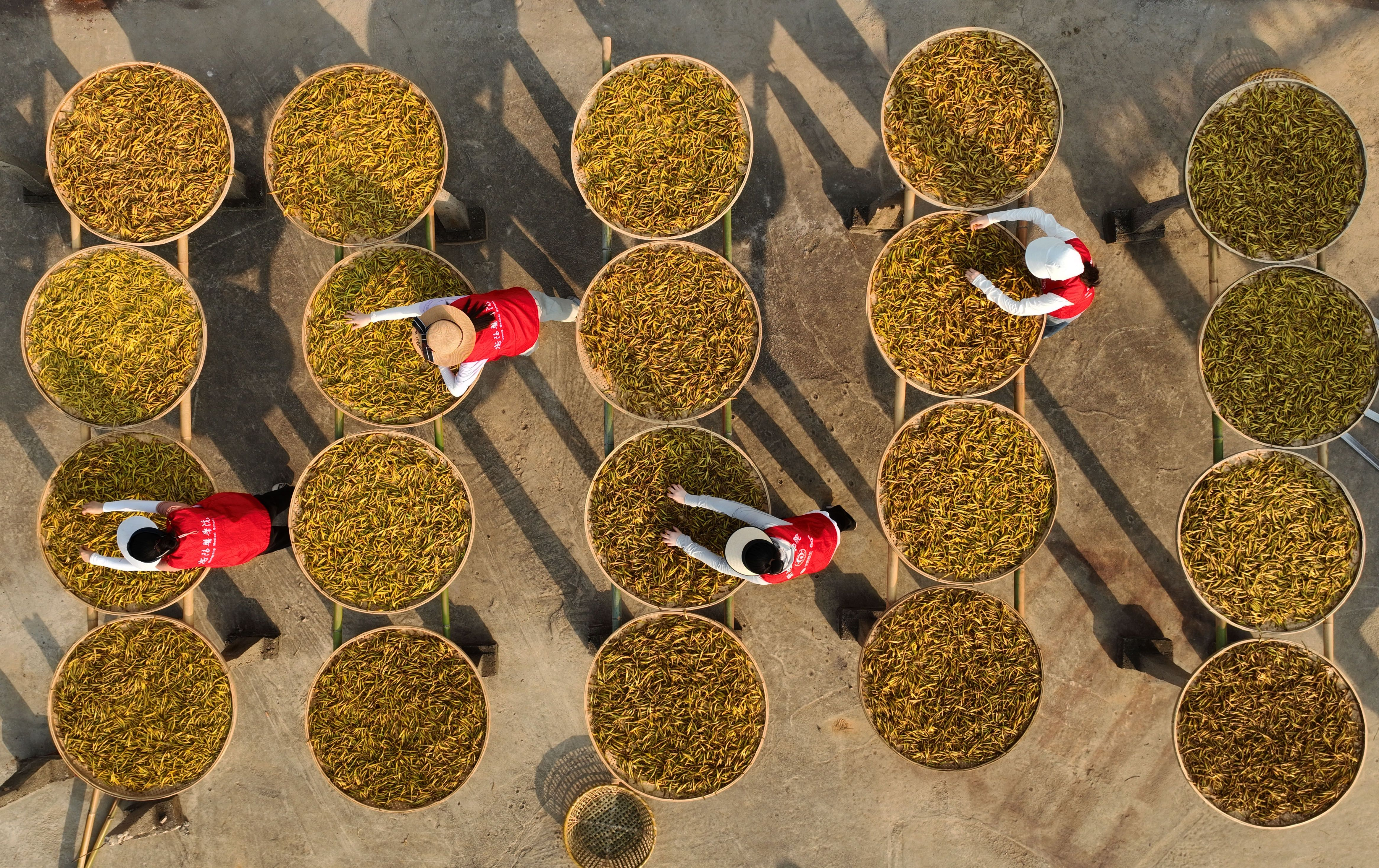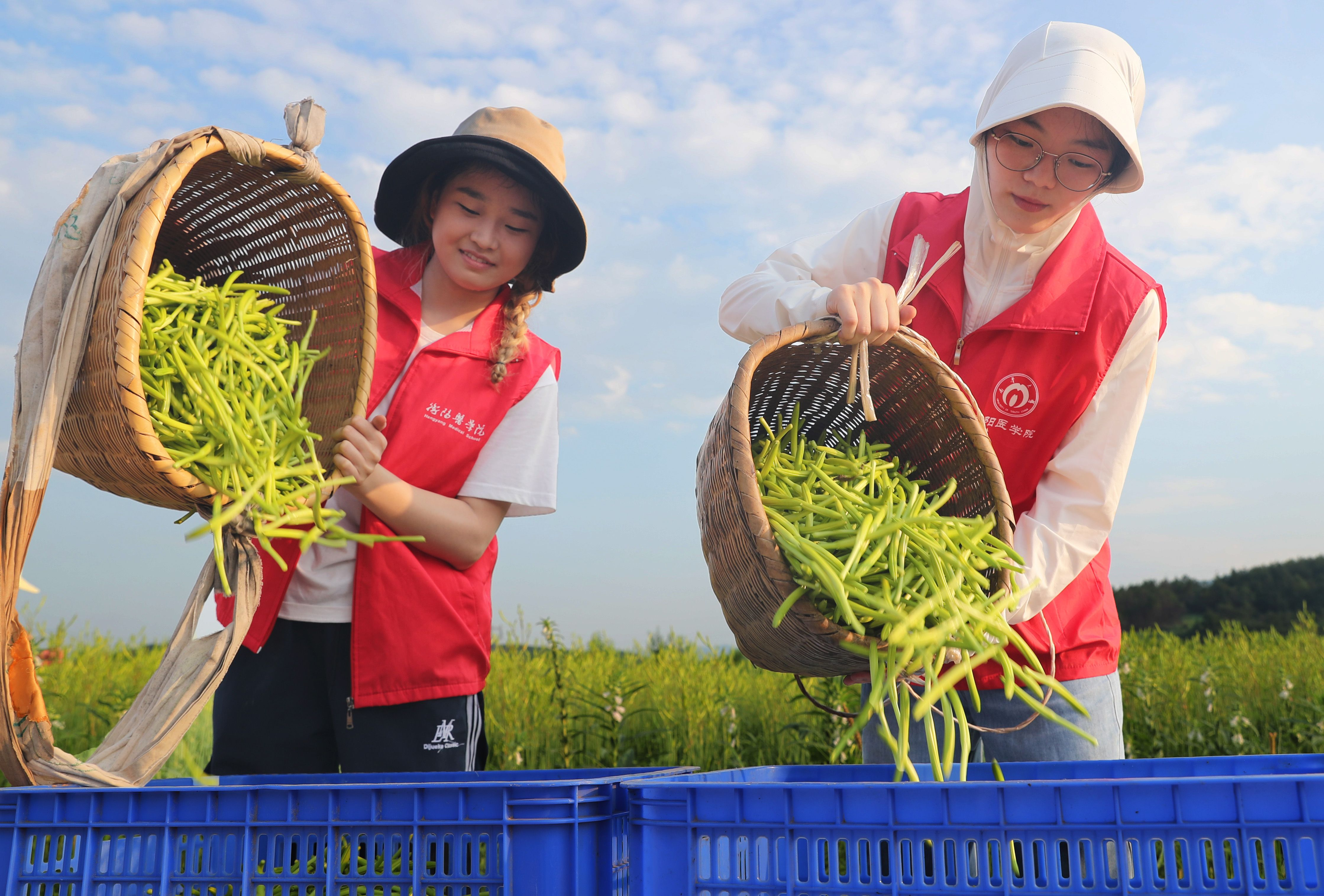 随后,实践团队来到属于县级“非遗”基地的黄花菜古法加工工艺非遗传承基地帮助农民晾晒黄花菜。据介绍,他们白天会将已经蒸过的黄花菜摊平在竹板上晾晒,晚上放入冷库,形成昼夜温差以提高甜度,最后依据品质对黄花菜进行分级包装。