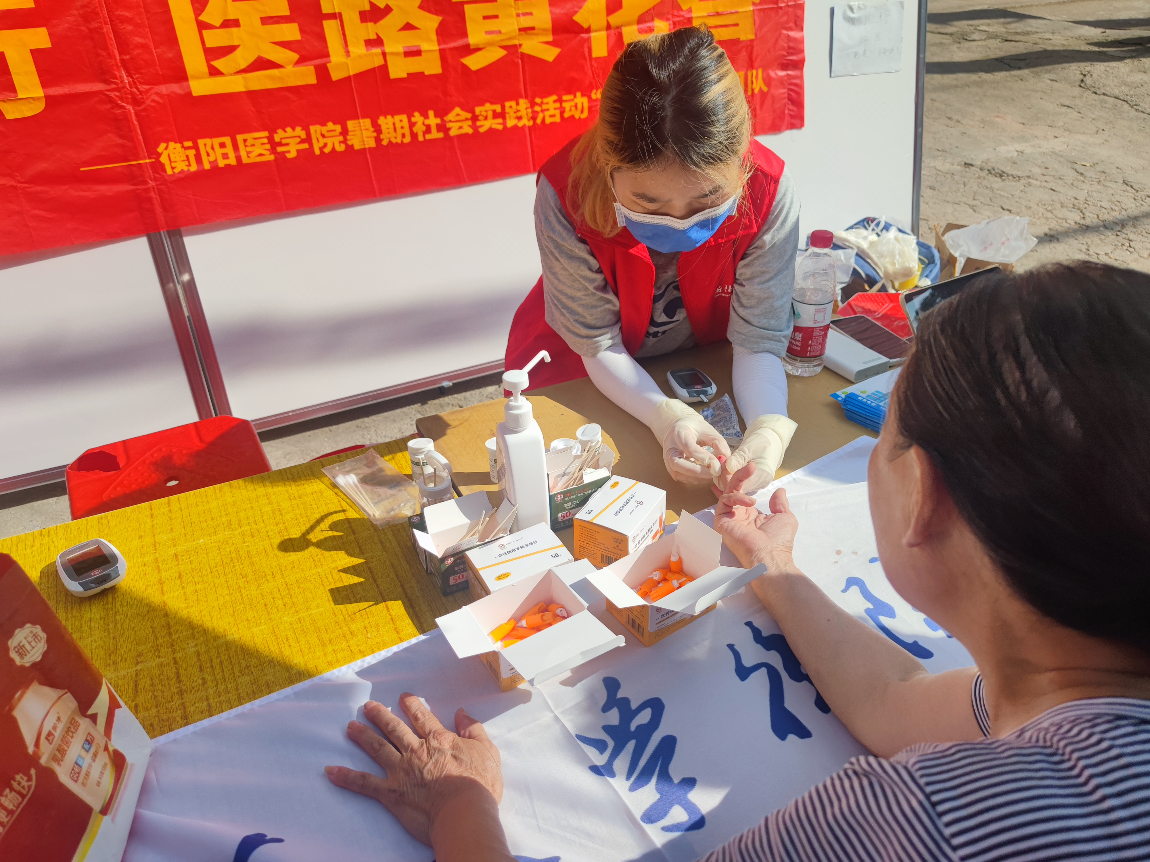 团队成员彭钰婷在义诊摆摊结束后感悟道:“在这次下乡测血糖的过程中,我发现乡镇的老人糖尿病高血压的知晓率是比较高的,也有很多人患有相关疾病,他们虽然有采取治疗,但是基层医疗体系待完善,控制效果较差,村民健康意识不够到位,有些老人因为农忙常漏服药物,农村老人们不能随时监测自己的身体状况。”