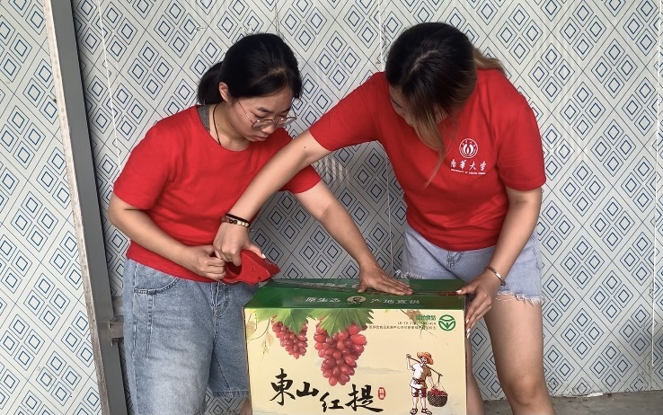 红提联结民族心,青春助力乡村兴:“欢迎大家前来品尝,口感清爽而丰盈,花瓣柔软多汁的阳光玫瑰。脆甜可口,果肉多汁细腻的紫玉红提,肉质饱满,色泽诱人的浪漫红颜。”一位身穿侗苗族服饰的团队成员对着镜头说道。在感受民族文化的同时,团队成员们也在为一年一度于每年十月举办的“东山红提节”预热剪辑宣传视频,并拟于十月份利用课业时间延续情缘,惠农直播助力乡村振兴。