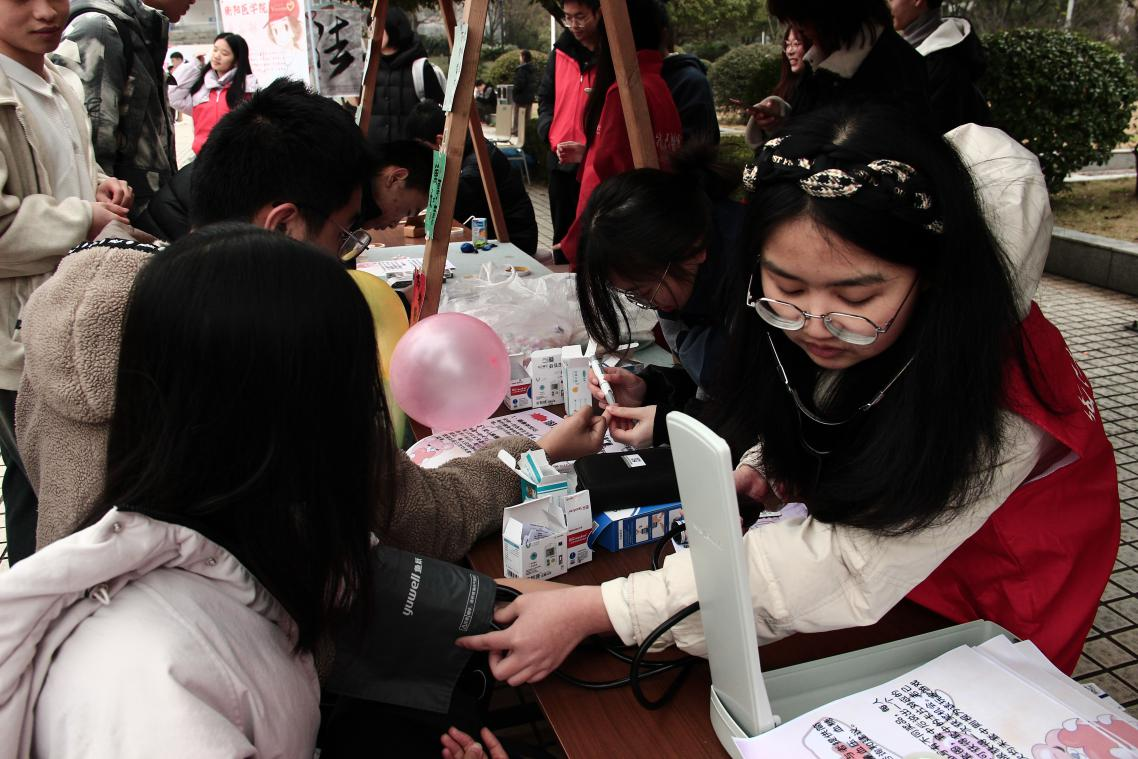 青年志愿者工作部以学习和弘扬雷锋志愿精神为中心,积极开展了“健康体检站”、“爱心套圈圈”、“CPR演示”等活动。其中最火爆的是“爱心套圈圈”活动,参与者有3次套圈机会,完全套中纸条后说出一句医学常识就能兑换奖品。“这样轻松的活动让我感受到了医学的魅力与趣味,其他同学的答案也让我受益匪浅。相比活动而言,有没有奖品好像不那么重要了。”一位没有赢得奖品的同学说道。