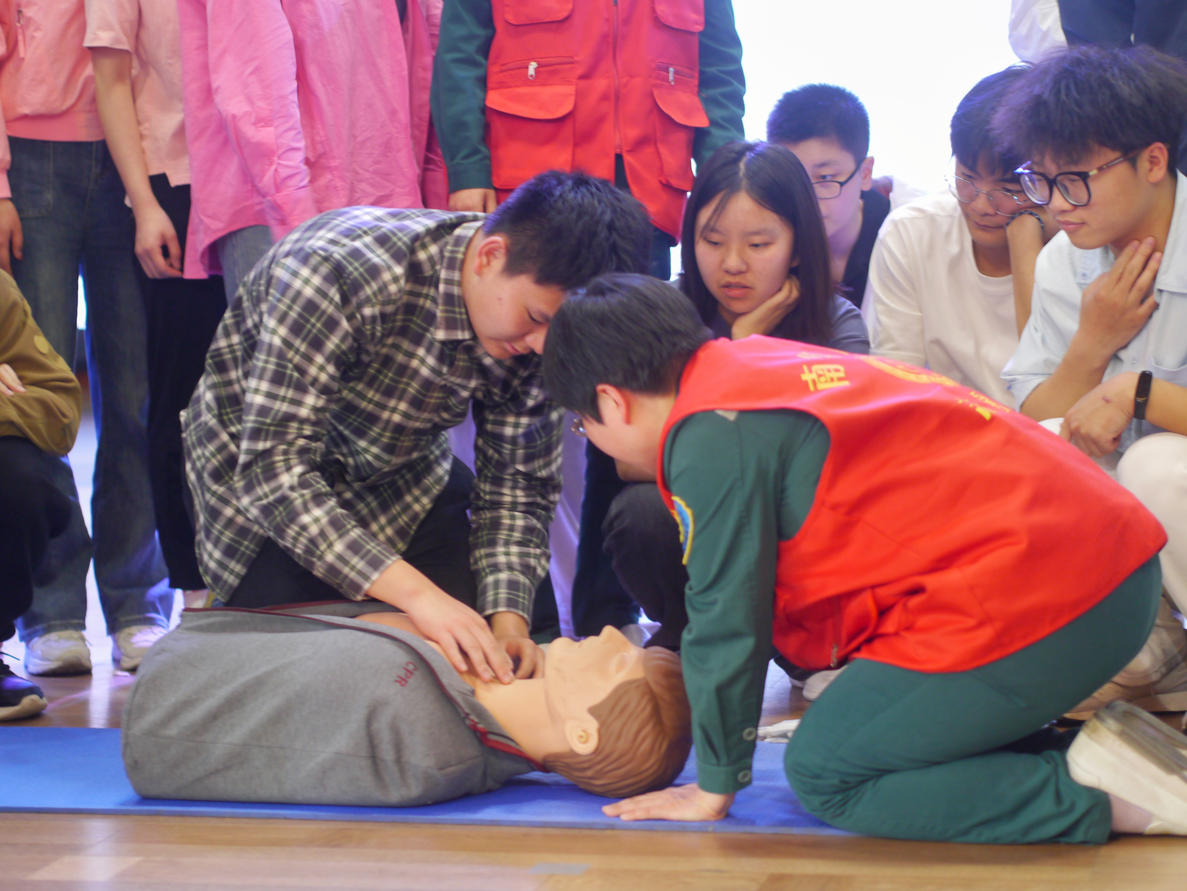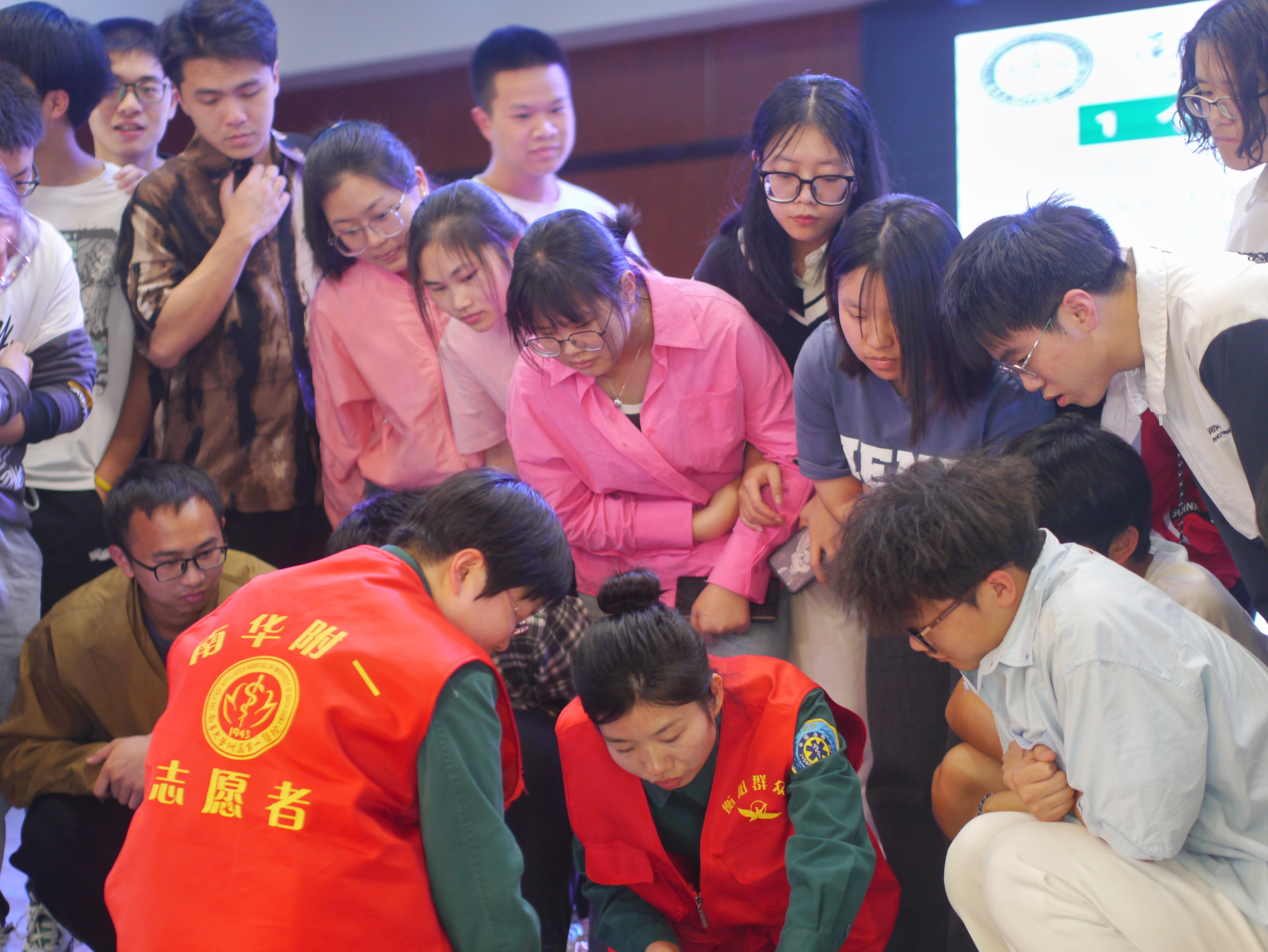 随后,邹老师强调了导诊服务对于患者的重要性,志愿者还要自觉维护我们医院的团体的形象,不能以志愿者的身份参与损害医院或者违背社会功德的活动,老师还用自己的故事为我们解答了“为什么要做一名志愿者”这一问题。医学是一件神圣的事情,成为一名志愿者献出爱心也是十分伟大的一件事,因此我们必须怀着爱心,怀着奉献精神来做义务社工。最后,邹琴老师为我们介绍了CPR和体外除颤仪,两位志愿者也在现场演示了CPR的操作方法和除颤仪使用时需注意的事项,让我们学到了许多使用的急救技能。
