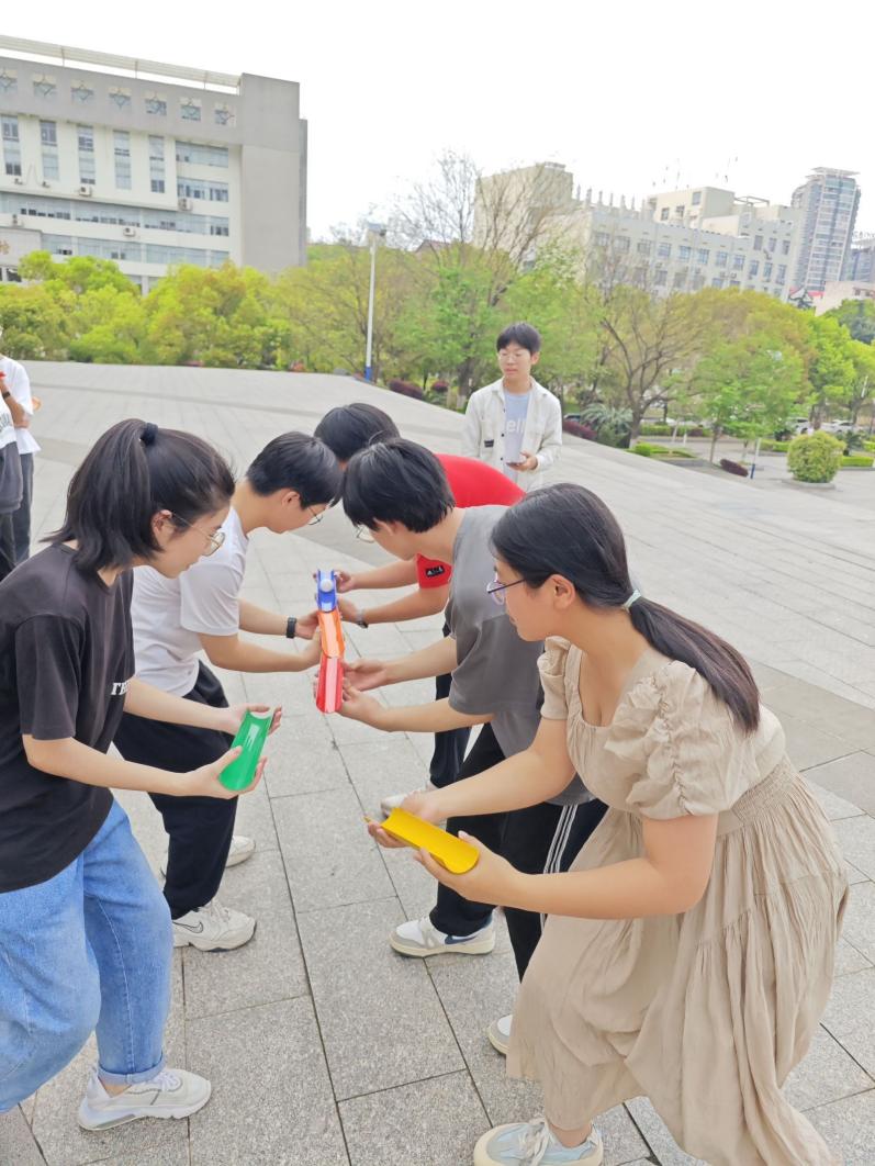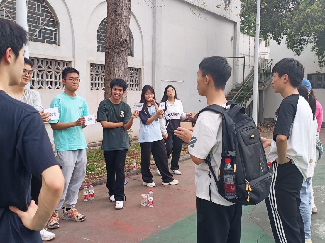尽管活动中途天降大雨,但参与者们的热情丝毫未减。第二个环节在雨后正式开始,各个小组重返游戏点,通过挑战获得宝藏地点的提示。在历经二次挑战的情况下,各小组成员充分发挥优势,规划路线,团结协作,以最快的速度通过游戏。在后续找寻宝藏的过程里,极大地发挥了集体力量,兵分几路,在校园里搜寻宝藏。