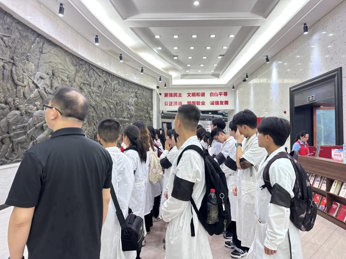 在衡阳市烈士陈列馆内,讲解员深情地讲解,从壮阔惨烈的衡阳保卫战、艰苦卓绝的衡宝会战,到113衡阳市特大火灾中牺牲的20位烈士,老师和同学们随着讲解员的脚步聆听着烈士们的英勇事迹。青山埋忠骨,史册载功勋,同学们纷纷表示要向革命先烈学习,将先辈的革命精神转化为而今的工作学习推动力,矢志不渝的为国家民族事业而奋斗。