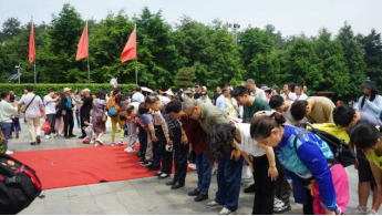上午11时,师生抵达第一站-韶山,在毛泽东铜像广场合影留念,在庄严肃穆的氛围中三鞠躬以表达对伟大领袖毛主席的无尽追思和敬仰之情。随后,大家一同前往毛泽东同志故居进行参观。