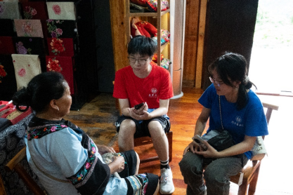 7月8日下午,太阳成集团tyc33455cc“实践激荡青春力量,巡礼助力乡村健康”暑期“三下乡”社会实践团暨七彩假期“‘洞’见美丽青春共筑梦,‘医’路乡传爱心助振兴”志愿服务队走进十八洞村苗绣乡村振兴示范基地,探访十八洞村原村委书记石顺莲,调研十八洞村乡村振兴背后的苗绣“五老”先进事迹。