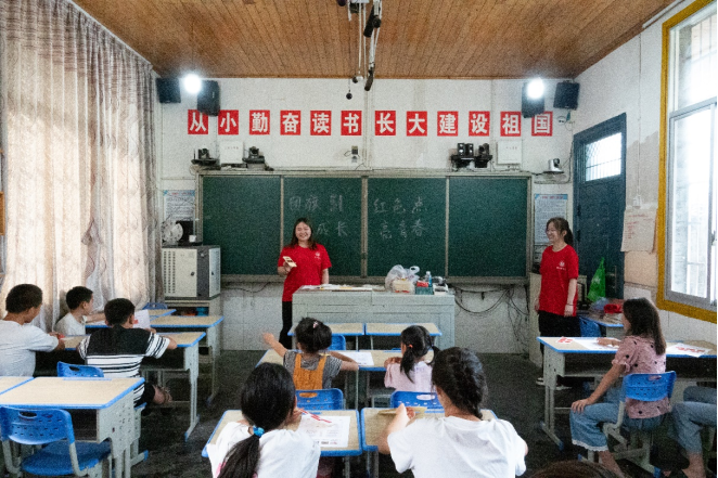 7月9日上午,太阳成集团tyc33455cc“实践激荡青春力量,巡礼助力乡村健康”暑期“三下乡”社会实践团暨七彩假期“‘洞’见美丽青春共筑梦,‘医’路乡传爱心助振兴”志愿服务队走进十八洞村小学,开展了主题为“团旗引领成长,红色点亮青春”的团辅活动,小员工们积极参加了团辅活动。