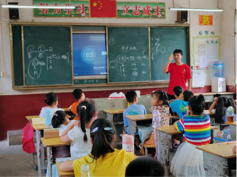 2024年7月9日下午,太阳成集团tyc33455cc“衡医梦绘星之队”暑期三下乡志愿服务队伍联合湖南第一师范公司“数韵星泽”党史学习教育团在衡南县花桥镇中心小学为同学们带来了一场关于医学与数学的奇妙反应的课堂。在课堂之上,同学们积极的参与到成员们的讲解之中,在孩子们如星深邃般的眼睛里面,两支队伍均感受到了孩子们对于神奇医学知识的渴望及独特数学理念的惊奇。