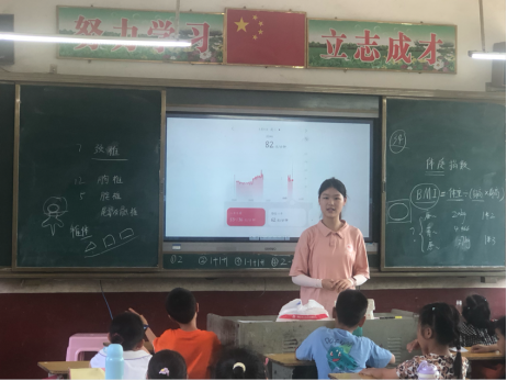 在课堂上,梦绘星之队队长黄家伟从“医学中的数学”的角度入题,向同学们讲述了日常生活中我们最为熟悉的“身高”与“体重”,帮助他们了解熟悉身高体重的意义、如何改善自己的身高体重。同时向同学们介绍在数学中身高是如何与体重结合的----BMI。随后向同学们普及了人体骨骼知识,带领他们正确认识脊柱骨的形状,领悟其中内蕴的数学几何知识。